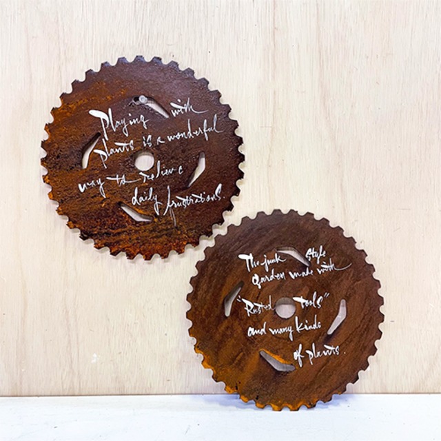 【抽選販売】 こちらの商品は抽選販売とさせて頂きます。 応募期間内にご注文お手続き頂きました方の中から 抽選で【3名様】に販売させて頂きます。 奮ってご応募ください♪ 応募開始 8/21(水)20:00から 応募締め切り 8/23(金)10:00まで 抽選結果 8/23(金)12:00メールにてお知らせいたします。 *** 多分こちらも草刈の刃であろうかと思われます。 いつもとは形の違うMASAO。 壁にかけてお庭のアクセントにしたり 写真の背景にしたり。 敷いて真ん中に鉢を飾ってもいいですね。 ご覧の通りサビサビですので 壁など汚れを気にする場所でのご利用は避けてください。 ※種類は選べません。 サイズ:直径220mm ※多少の誤差をご了承ください。 【配送について】 ・ヤマト宅急便以外のお届け日時のご指定はできません。 ・コンビニ決済、銀行振込をお選びの際は入金確認後の発送となりますので予めご了承ください。その場合、ご指定の日時に間に合わない事もございますのでご注意ください。