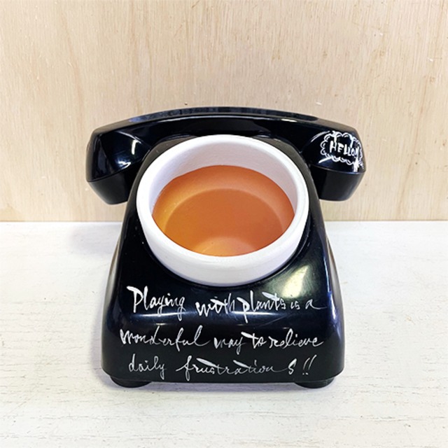 力技リメイク! 昭和レトロな黒電話のダイヤル部分をくり貫いて鉢をセット!! オリジナルの電話プランターです♪ 受話器部分にも植えられます。 ジャンクでレトロなお庭を目指す方におすすめ♪ またお部屋の中でインテリアとしてもお楽しみ頂けます。 ※本物の古い電話機を使用していますので擦り傷などございます。 サイズ:幅240 奥行き210 高さ130 (mm) ※多少の誤差はご容赦ください。 ★★【お支払についてのご注意事項】 ※複数商品をお買い上げの方は、⚠️必ず「カード決済」をご選択ください。 ※「カード決済」以外のお支払をご選択の方への送料重複分ご返金は承りかねますので予めご了承下さい。 【配送について】 ・極力即日発送を心掛けていますが都合により遅れる場合もございます。 ・ヤマト宅急便以外のお届け日時のご指定はできません。 ・コンビニ決済、銀行振込をお選びの際は入金確認後の発送となりますので予めご了承ください。その場合、ご指定の日時に間に合わない事もございますのでご注意ください。