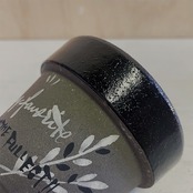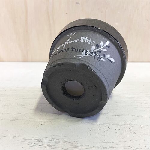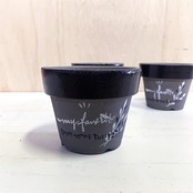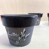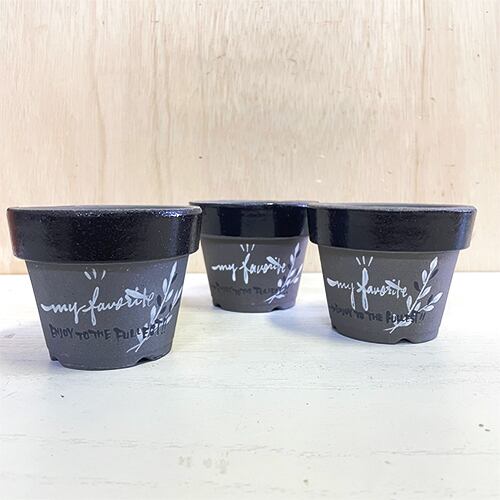 【リメイク鉢】3号グレー素焼き鉢 リーフ柄