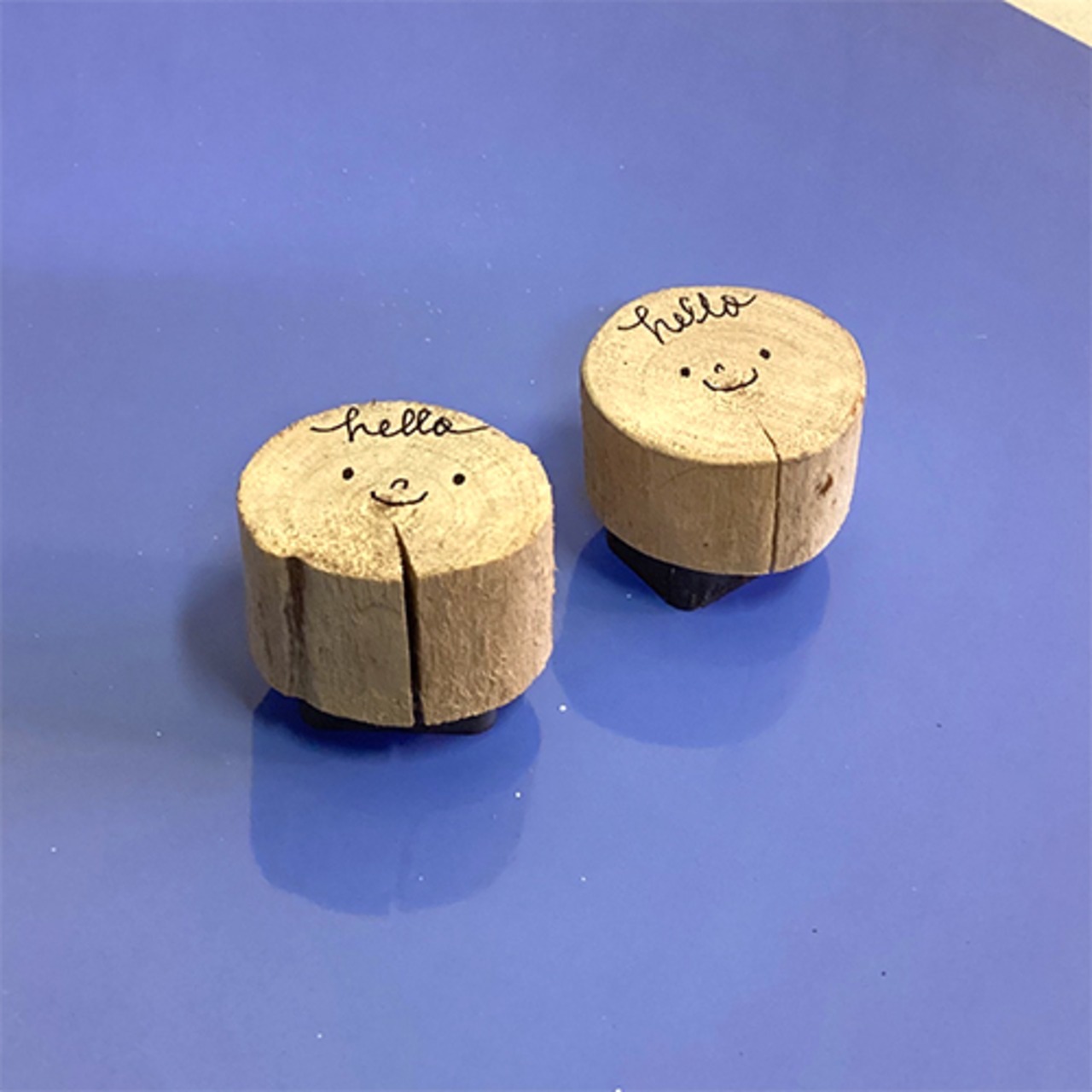 【ハンドメイド】流木輪切りのマグネット helloくん