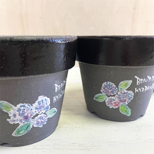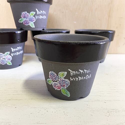 【リメイク鉢】3号グレー素焼き鉢 アジサイ ※お一人さまおひとつ限り