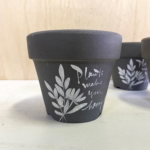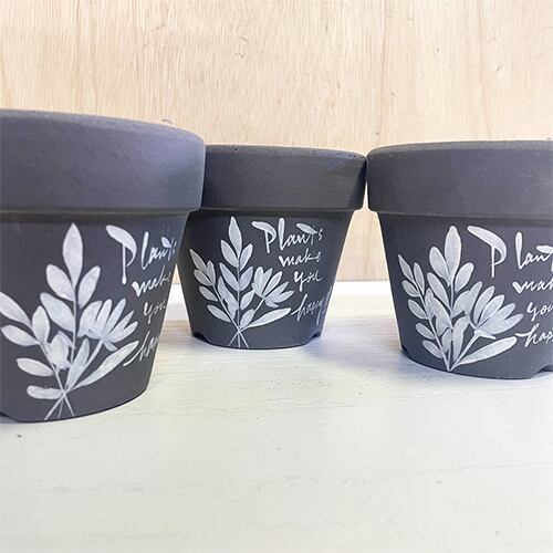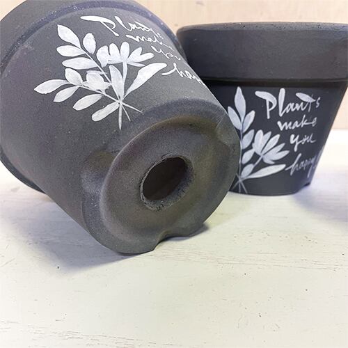 【リメイク鉢】4号グレー素焼き鉢 ボタニカル柄