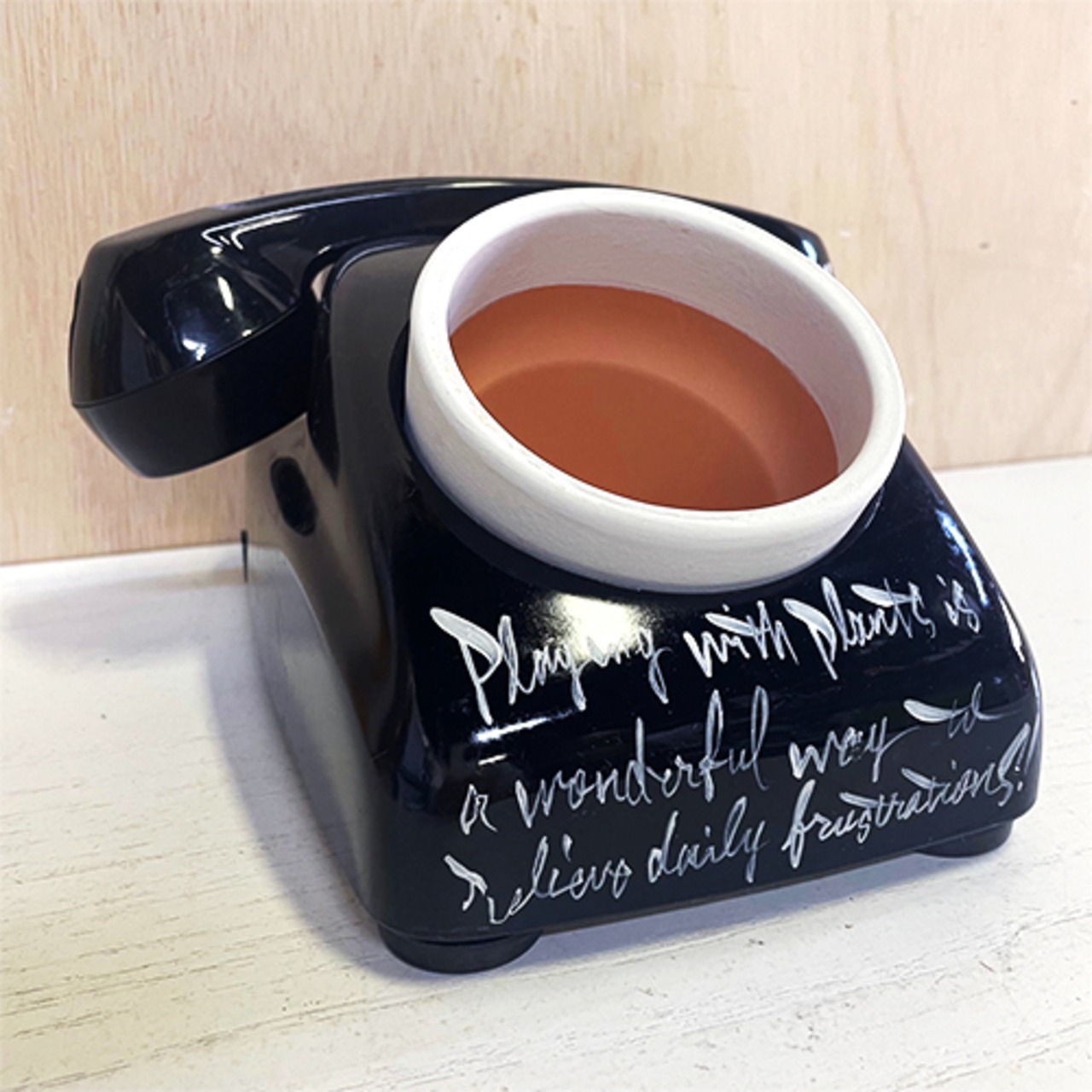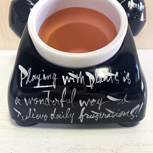 昭和レトロな黒電話のダイヤル部分をくり貫いて鉢をセット!!