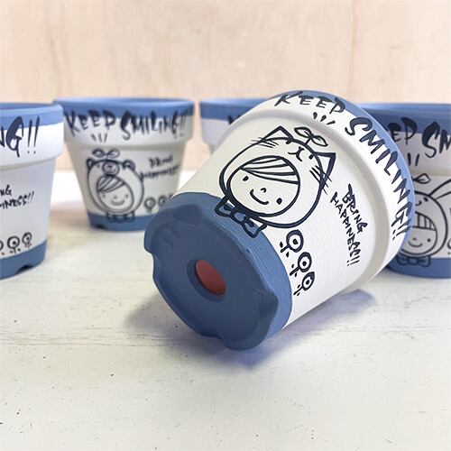 スミレちゃんを描いたかわいい2.5号鉢です。