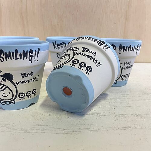 【リメイク鉢】2.5号丸鉢 KEEP SMILINGシリーズ 定番 ライトブルー