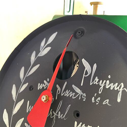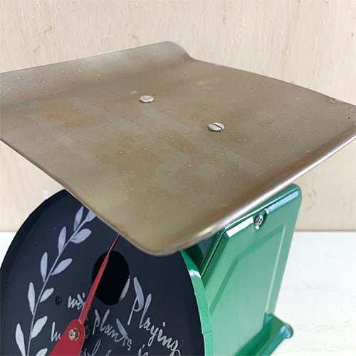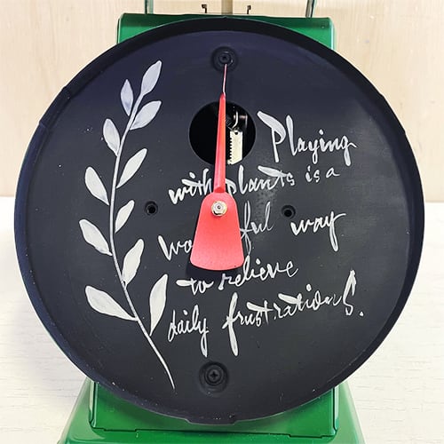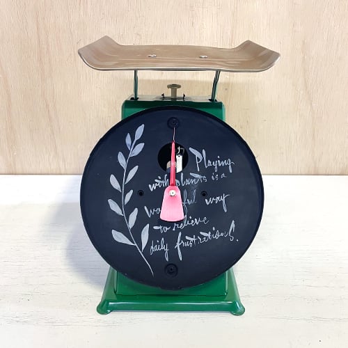 ジャンクな上皿ハカリに文字を入れたガーデンオブジェです♪