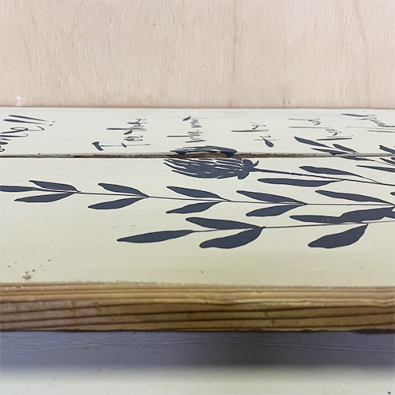 【リメイク古道具】作陶台イラストパネル フラワー&リーフ