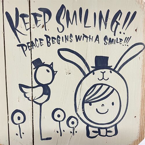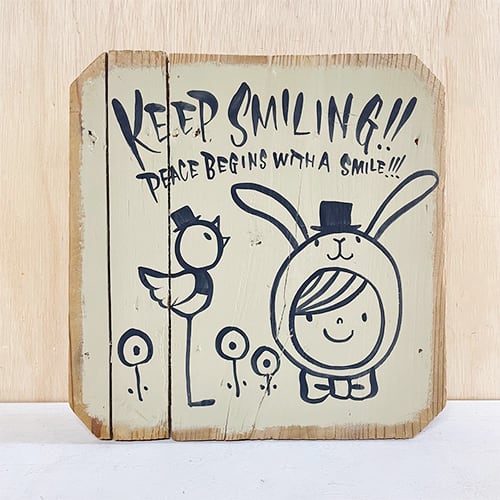 【リメイク古道具】作陶台イラストパネル KEEP SMILINGシリーズ うさぎ *屋内用*