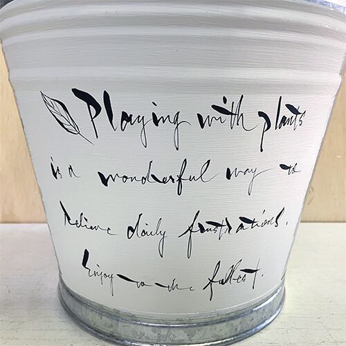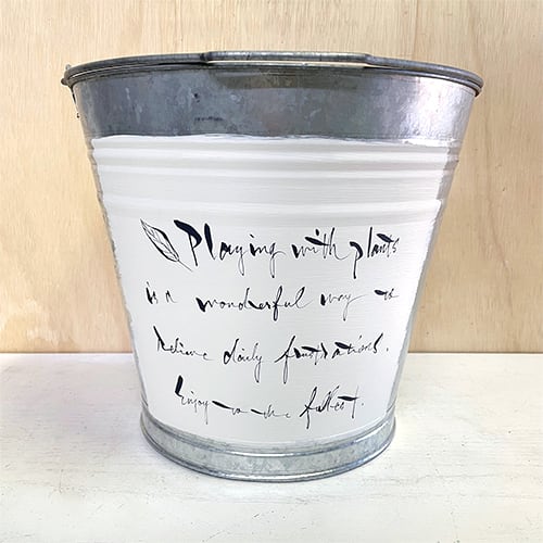 文字を入れたシンプルなブリキのバケツプランター♪