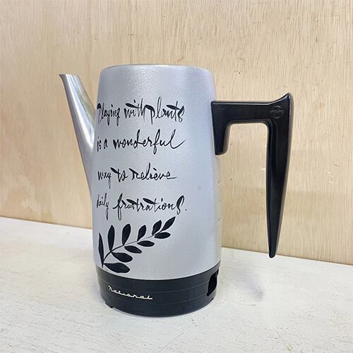古い電気ケトルに文字やイラストを添えてプランターにアレンジ!