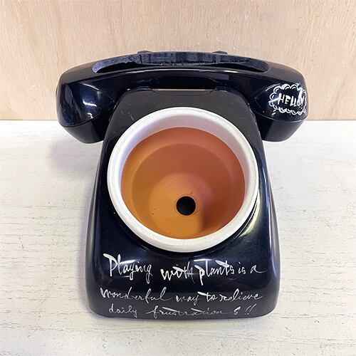 昭和レトロな黒電話のダイヤル部分をくり貫いて鉢をセット!!
