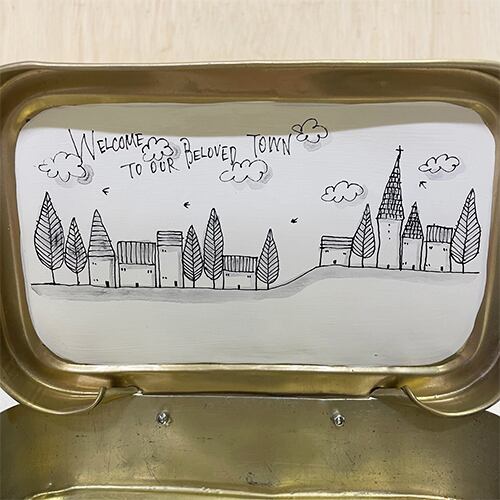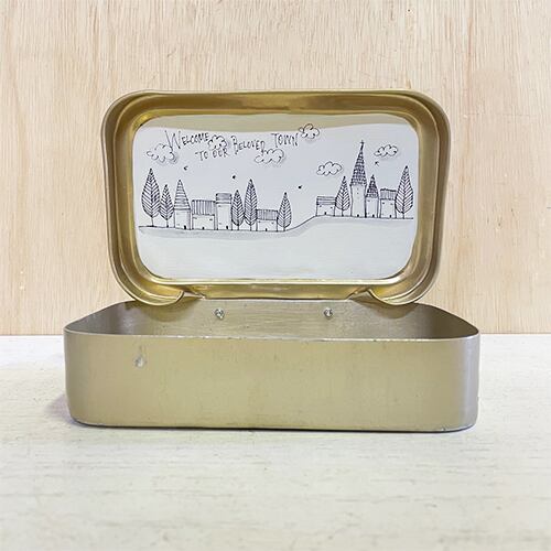 【リメイク古道具】アルミの弁当箱プランター 町並みシリーズ