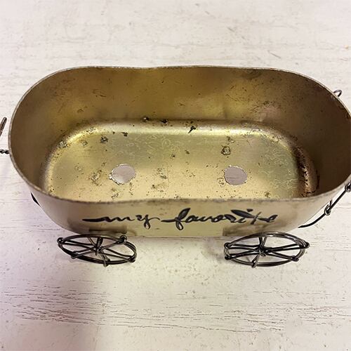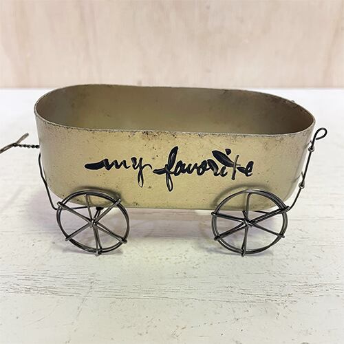 ワイヤーで作ったカートにアルミの小さなBOXを乗せたミニミニプランターです!
