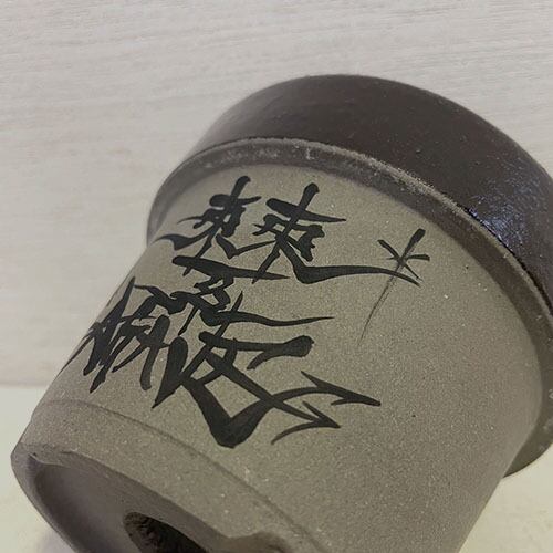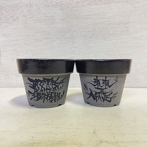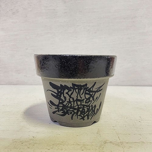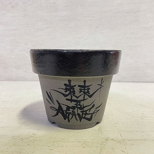 【リメイク鉢】創作文字3号グレー素焼き鉢