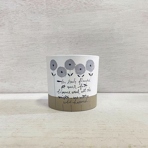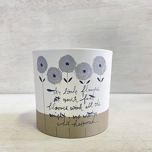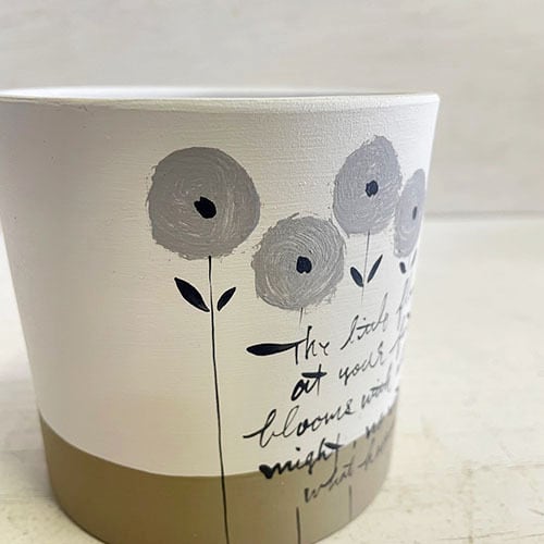 かわいいグレーの小花が並んだ円筒型の3号鉢♪