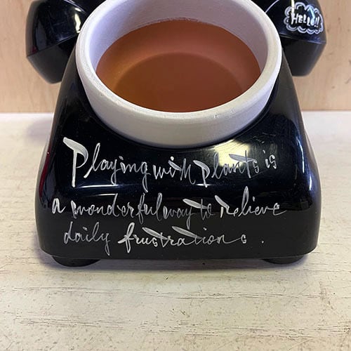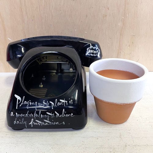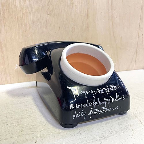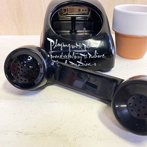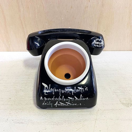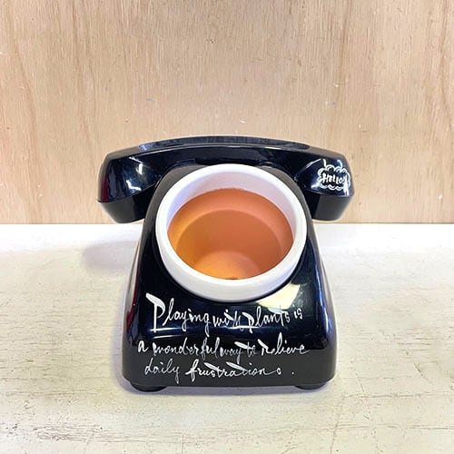 昭和レトロな黒電話のダイヤル部分をくり貫いて鉢をセット!!