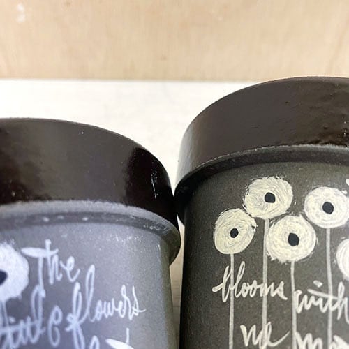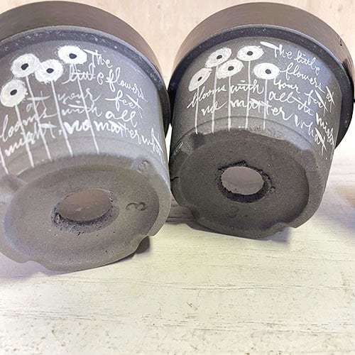 【リメイク鉢】3号グレー素焼き鉢 丸小花