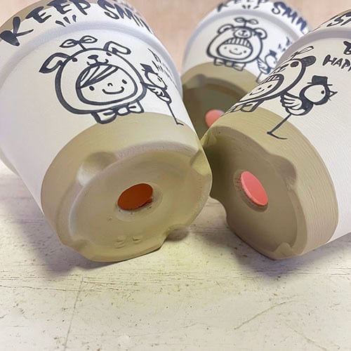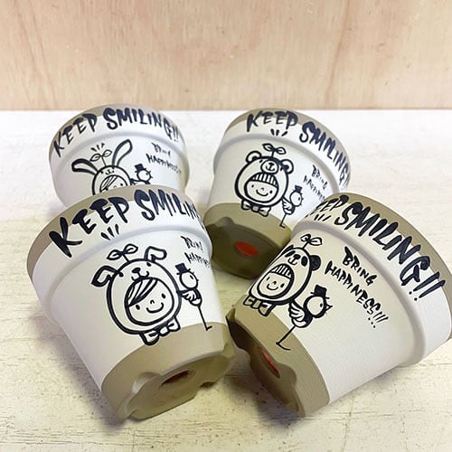 定番デザインのスミレちゃんを描いたかわいい2.5号鉢です。