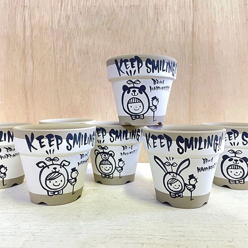 【リメイク鉢】2.5号丸鉢 KEEP SMILINGシリーズ 定番 ベージュ