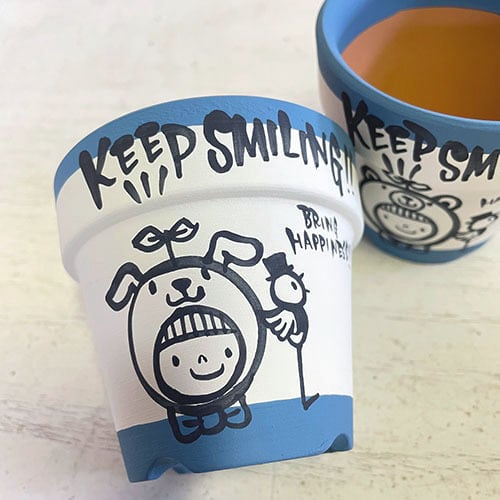 【リメイク鉢】2.5号丸鉢 KEEP SMILINGシリーズ 定番 ブルー