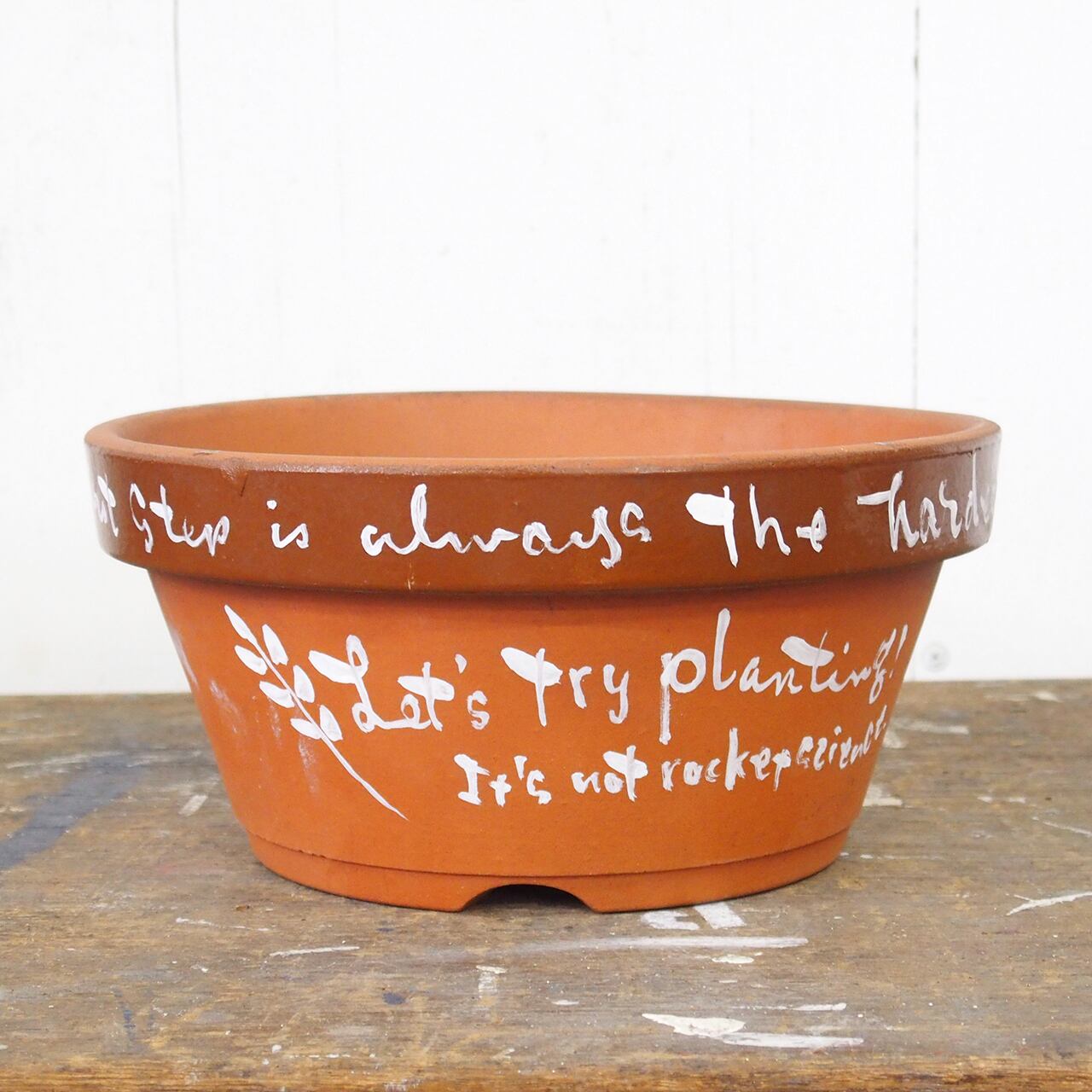 【リメイク鉢】文字アレンジ鉢 浅鉢8号