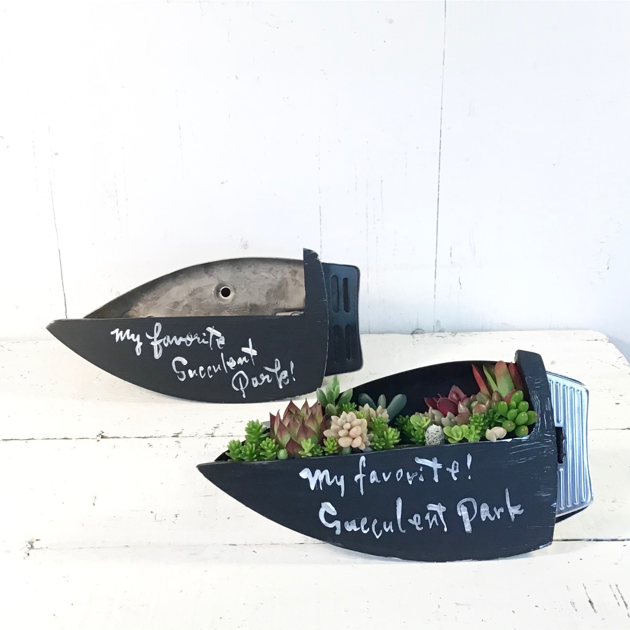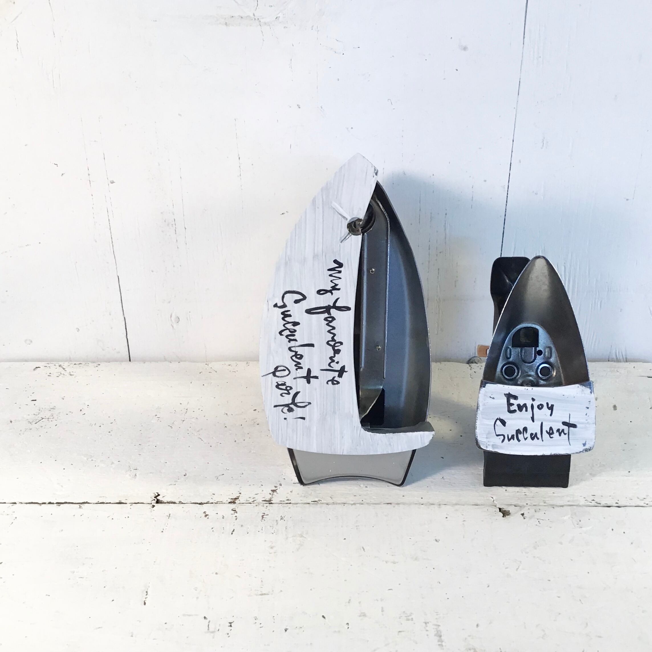 アイロンを切り取ったプランターです♪