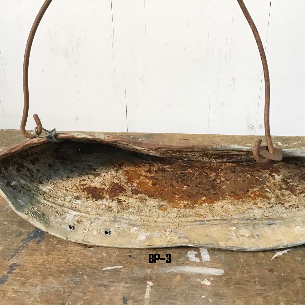 ジャンクな古いブリキのバケツの底を潰し