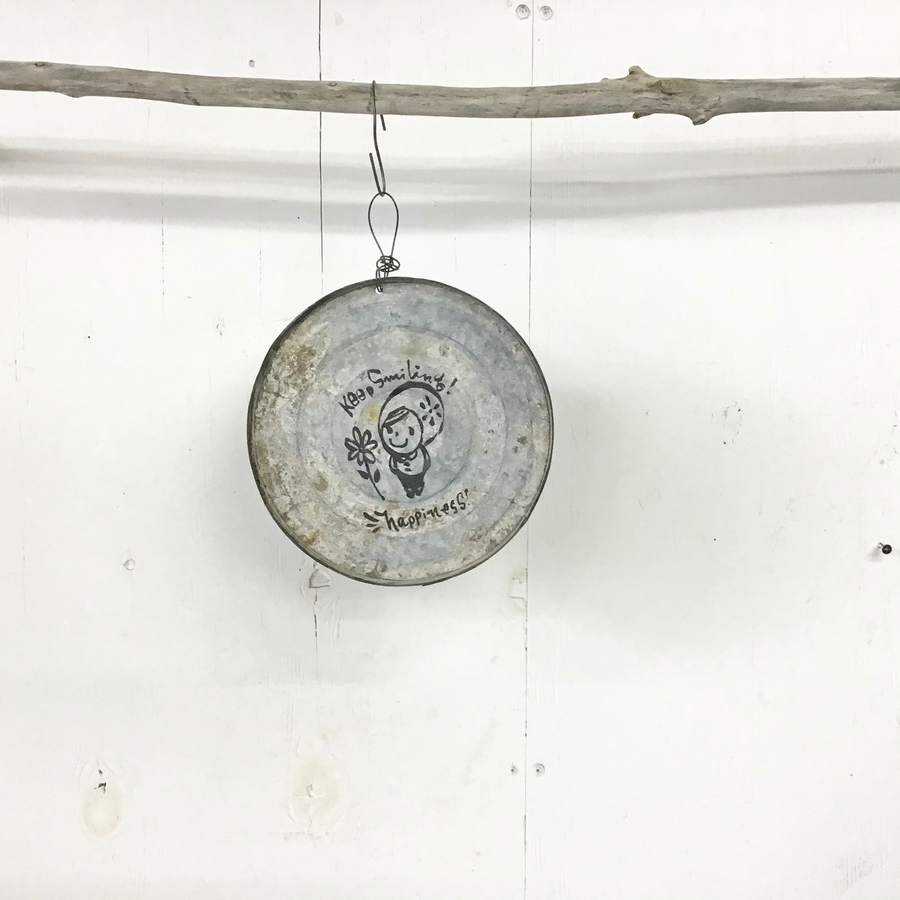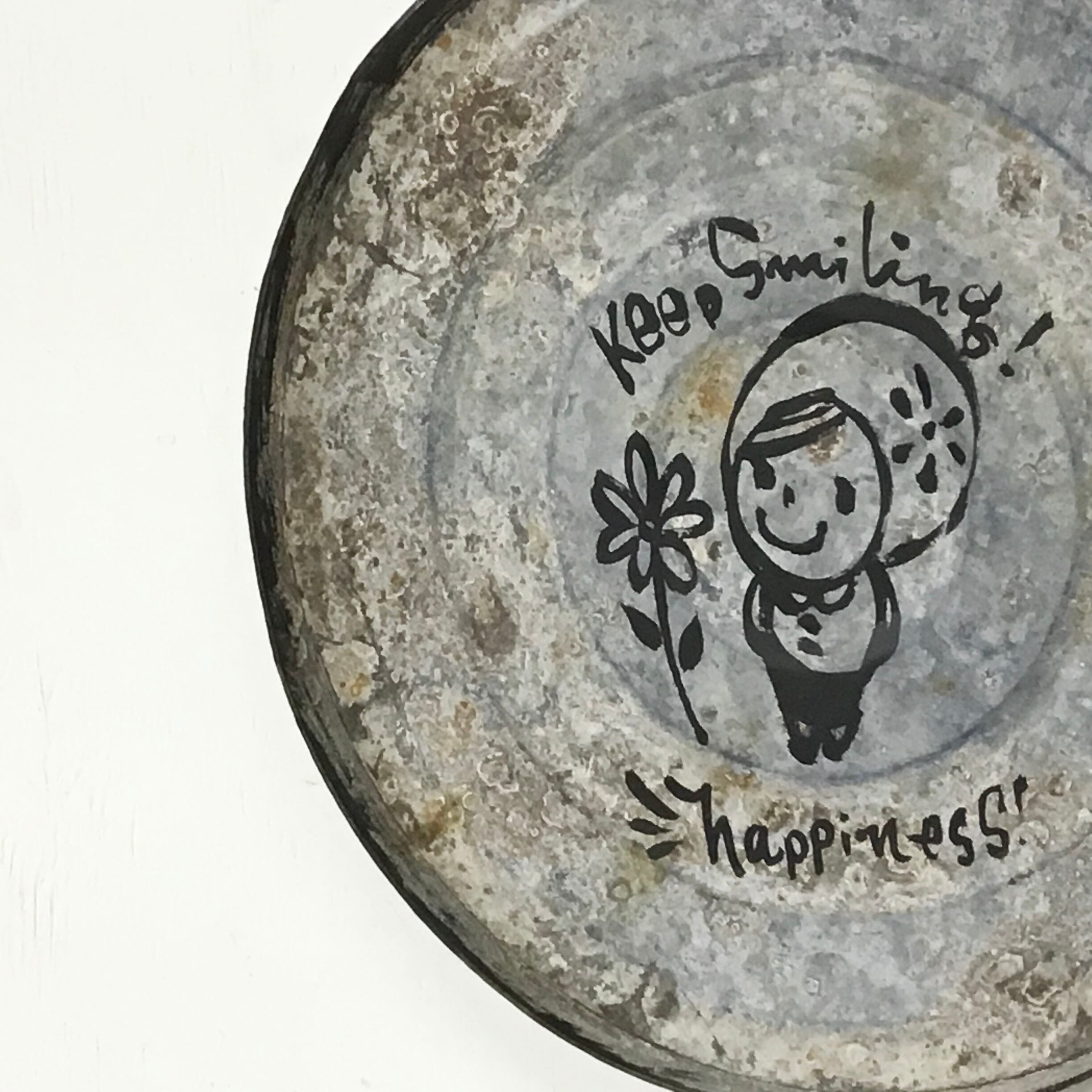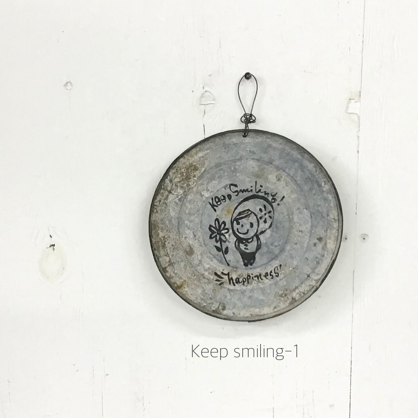 【リメイクサイン】ブリキ丸サイン Keep smiling-1