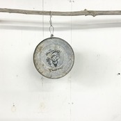 丸いブリキに文字とイラストを入れたサインです。