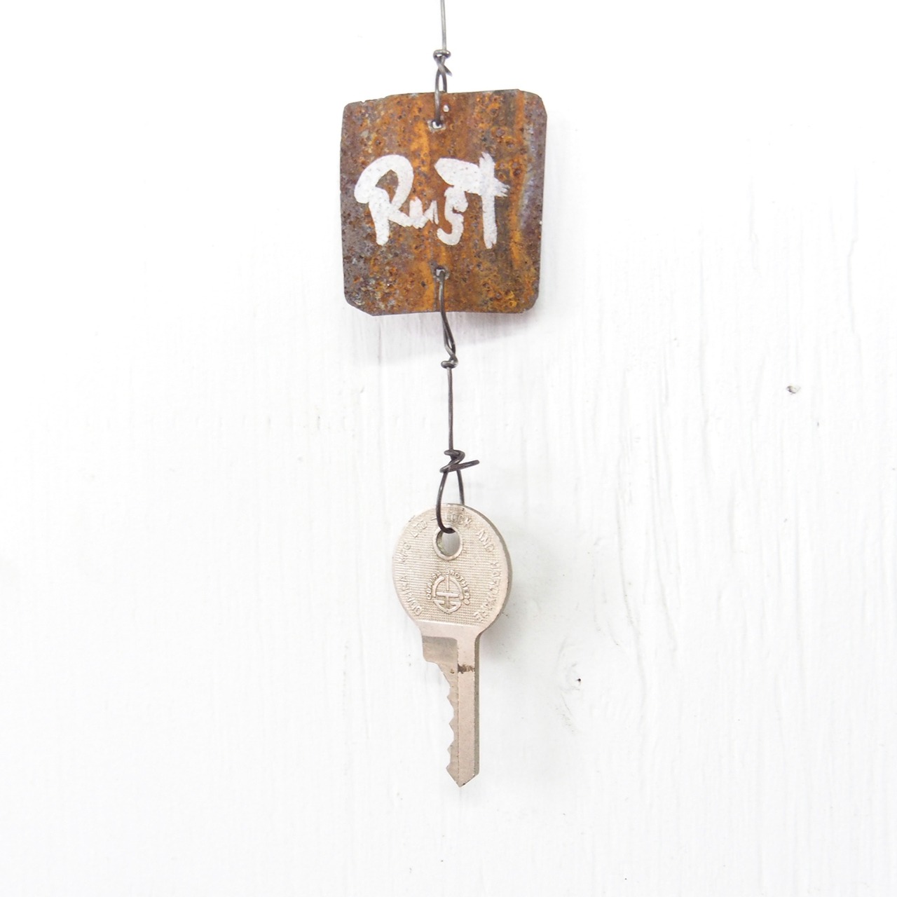 古い鍵をぶら下げたガーデンアクセサリーです。