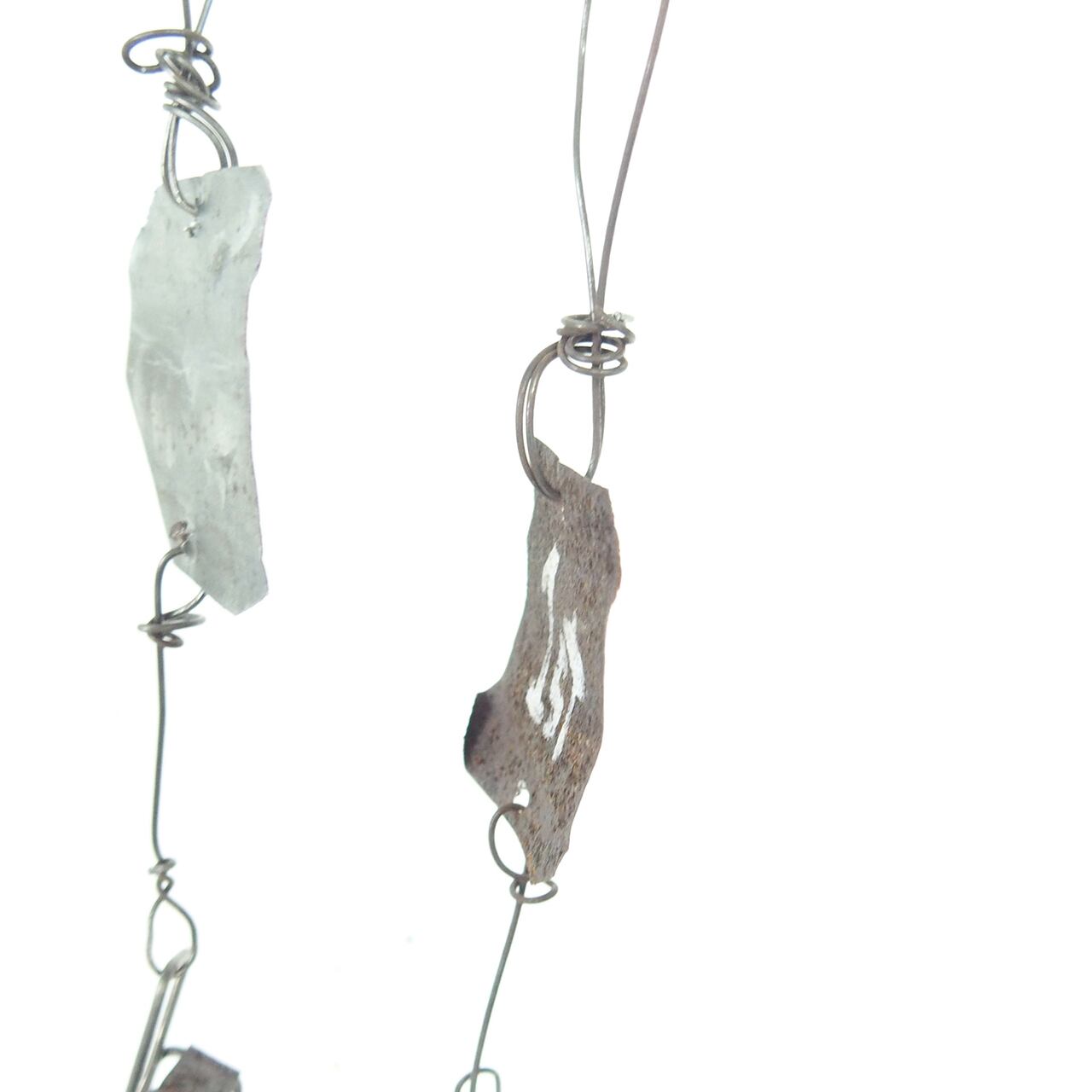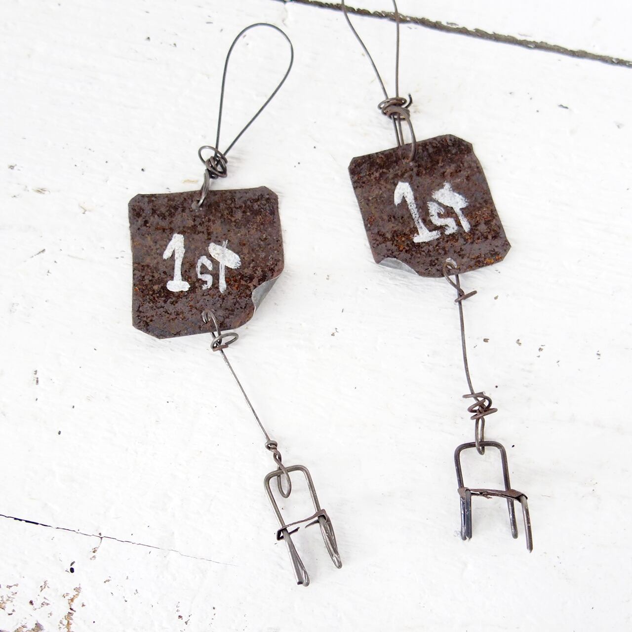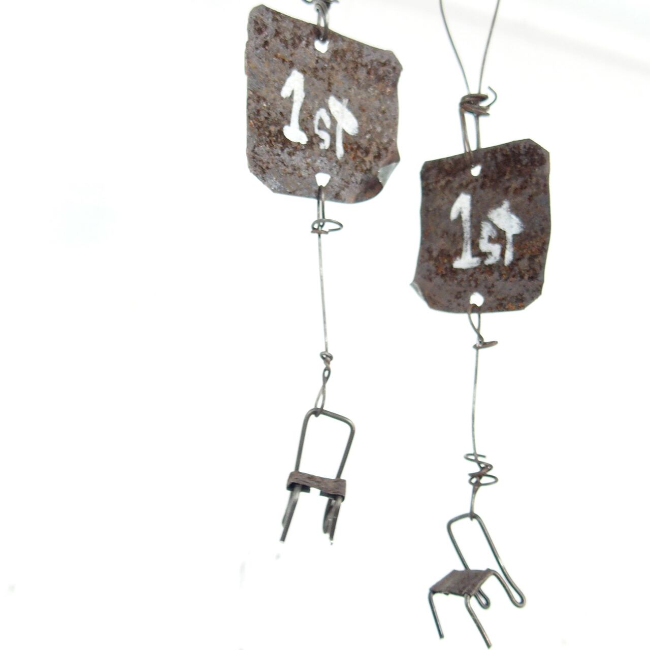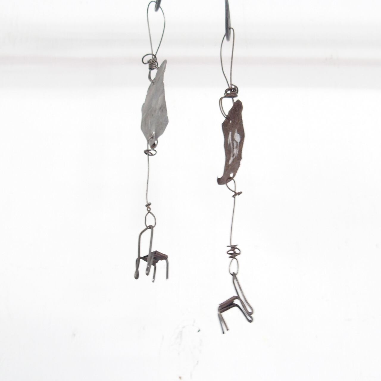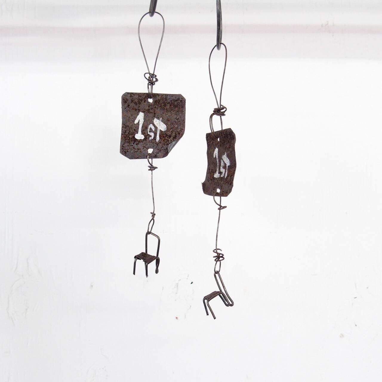 ワイヤーで作った指先サイズのイスをぶら下げた