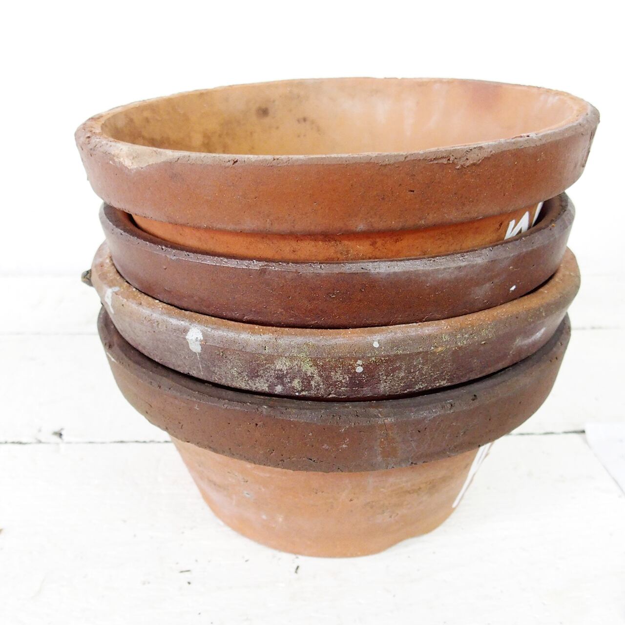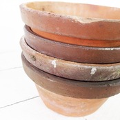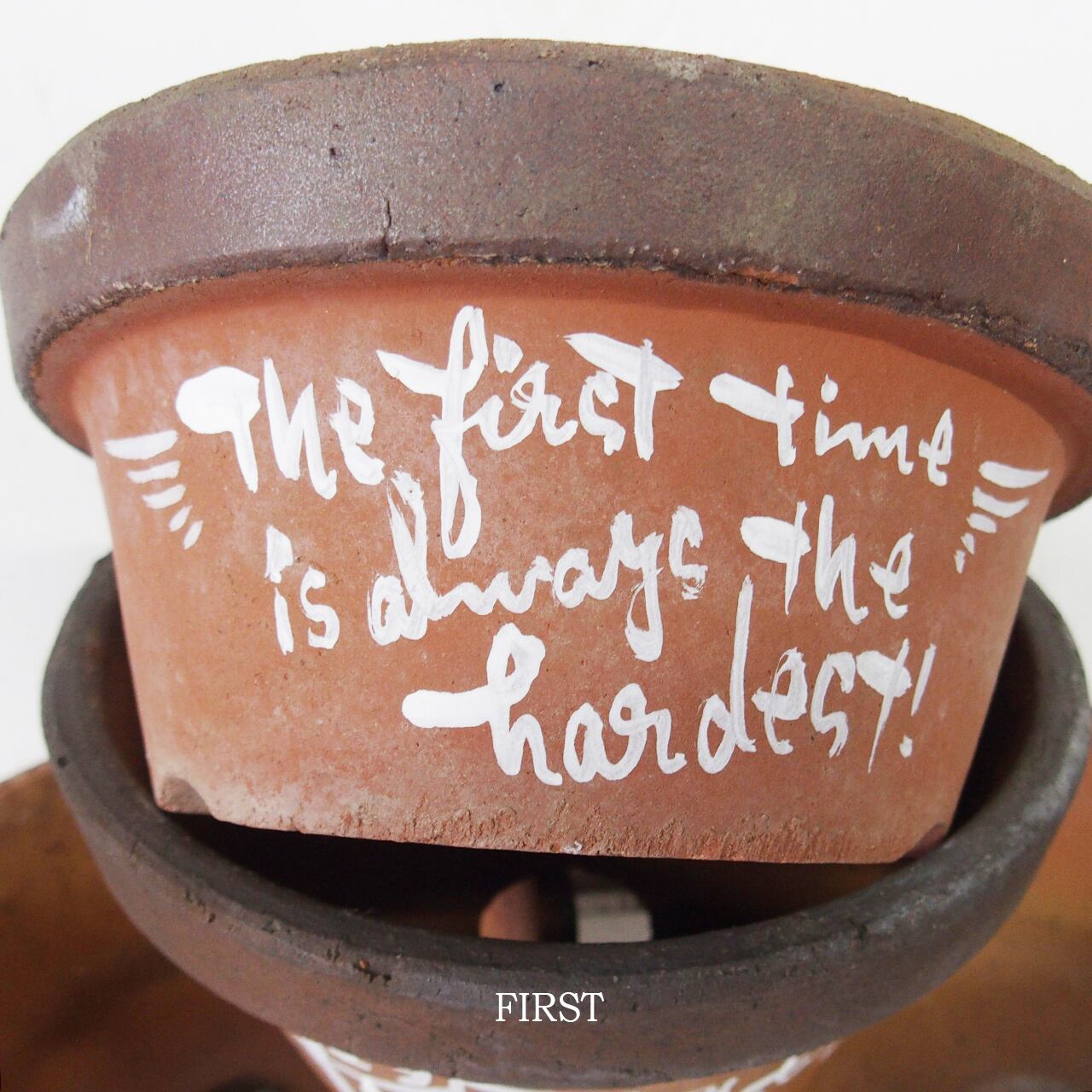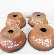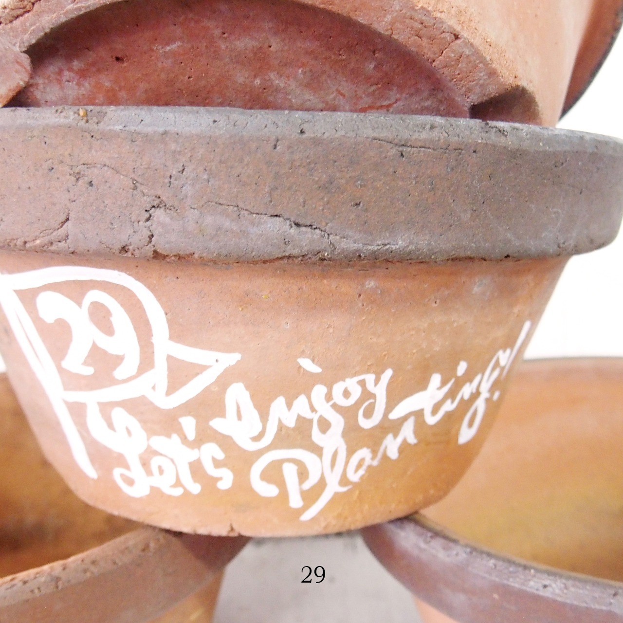 デッドストックの素焼き鉢にイラストと文字をペイントしました。