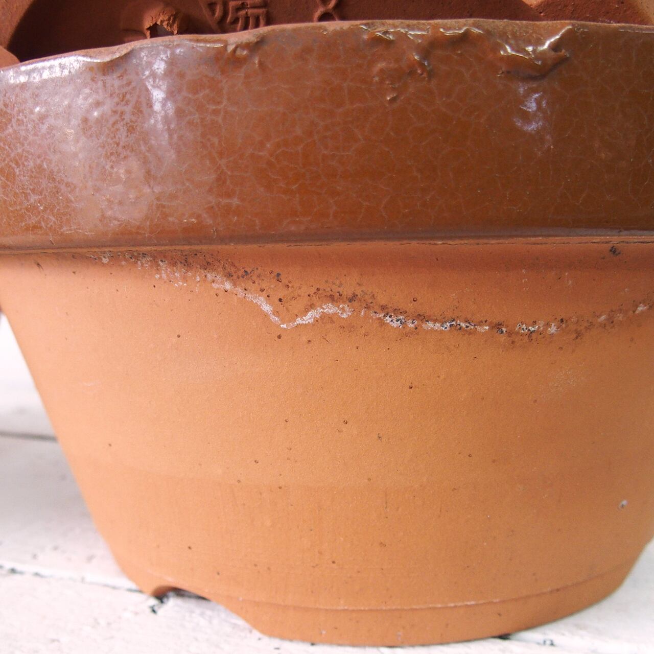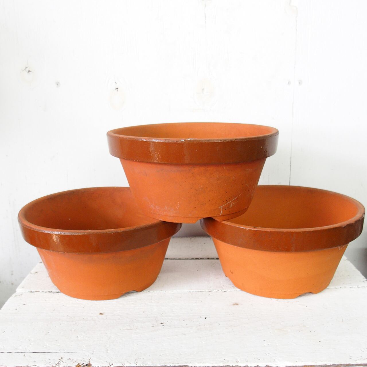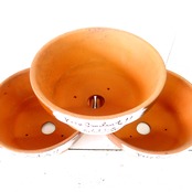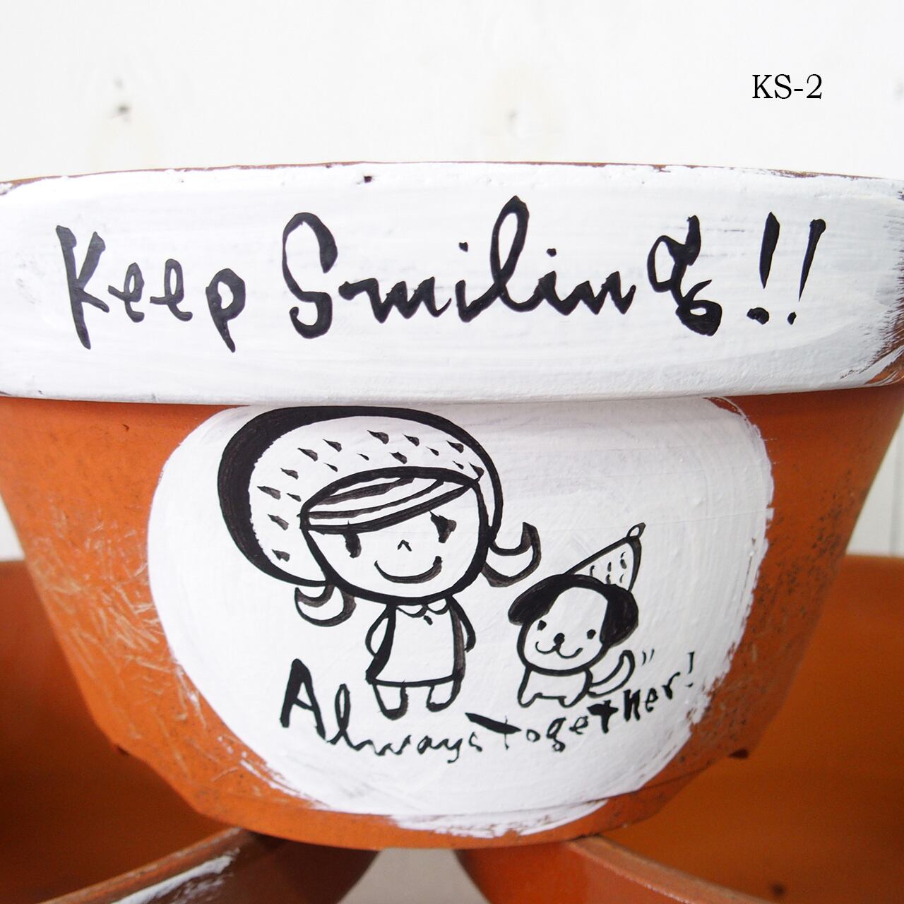 デッドストックの素焼き鉢にイラストと文字をペイントしました。