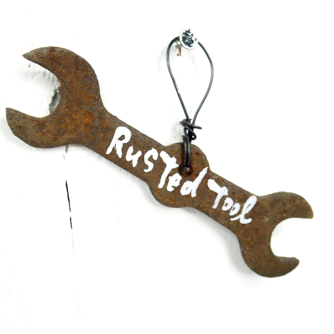 丸いサビサビスパナに文字を入れたサインです。