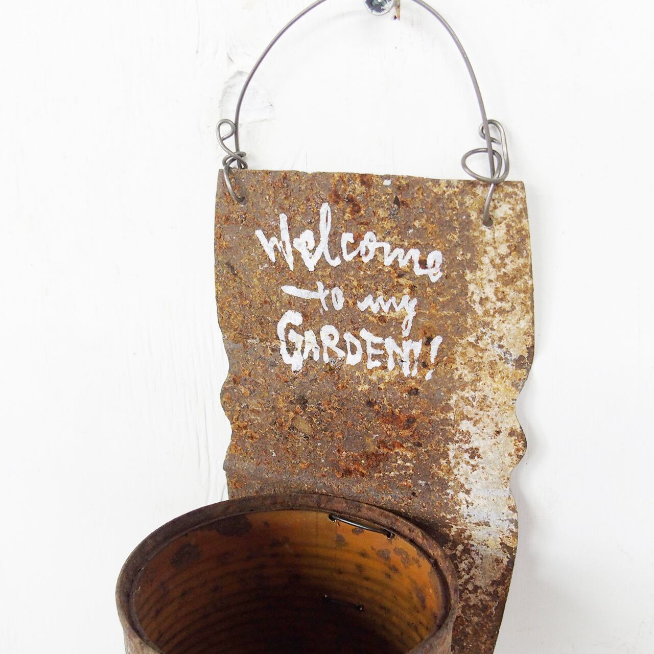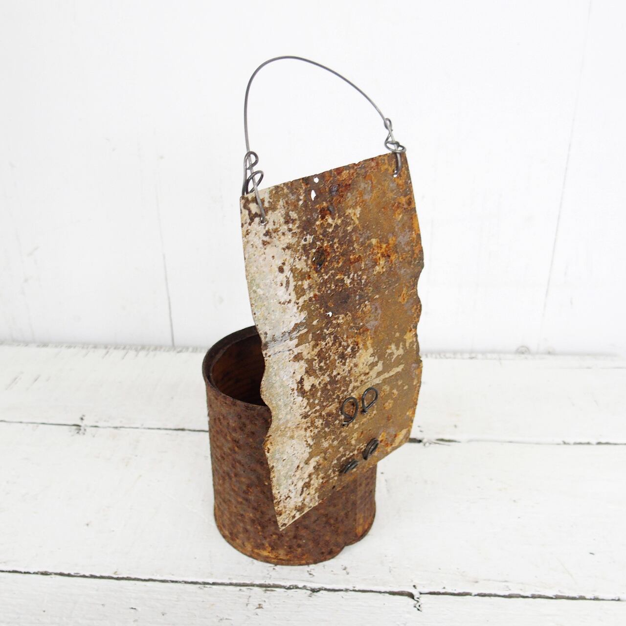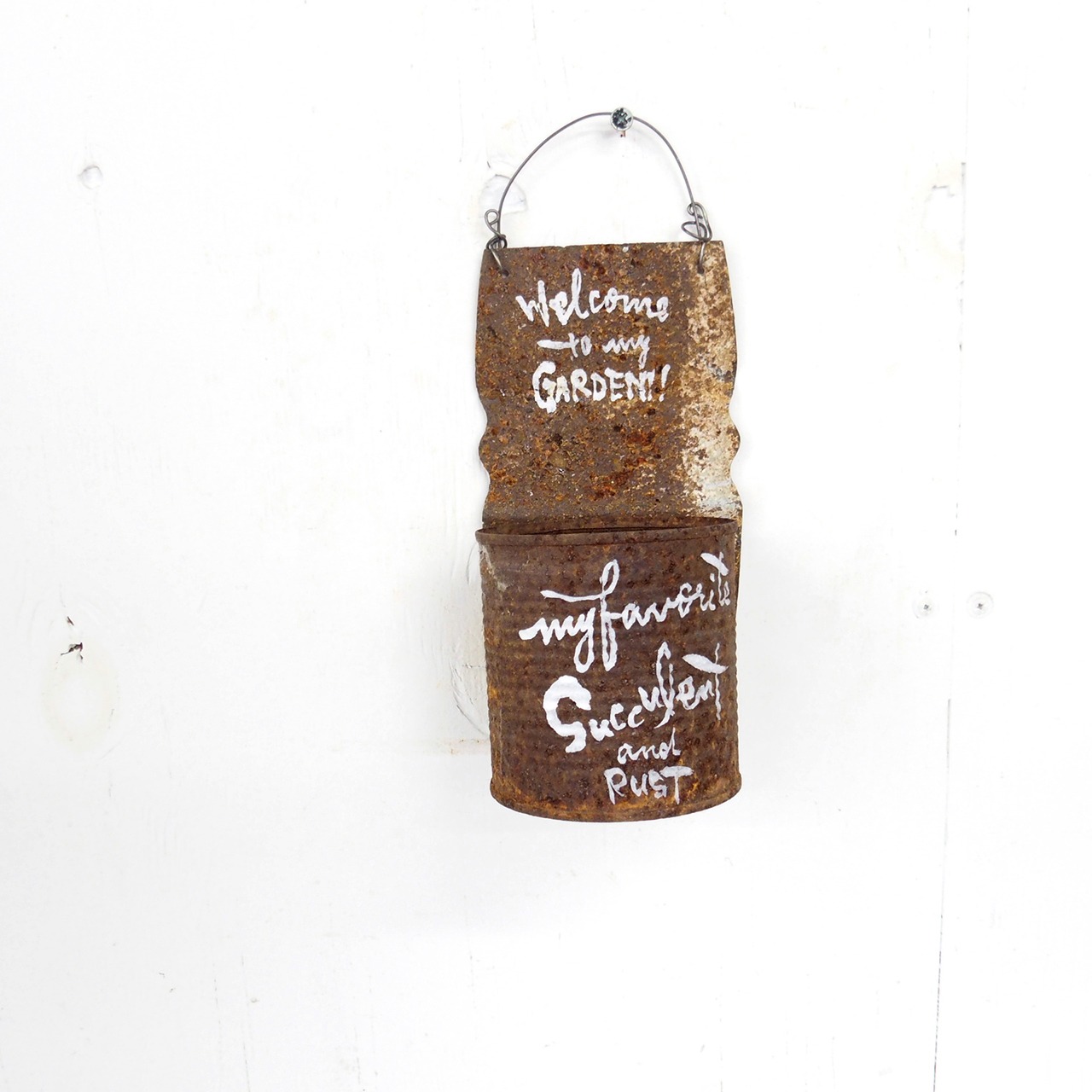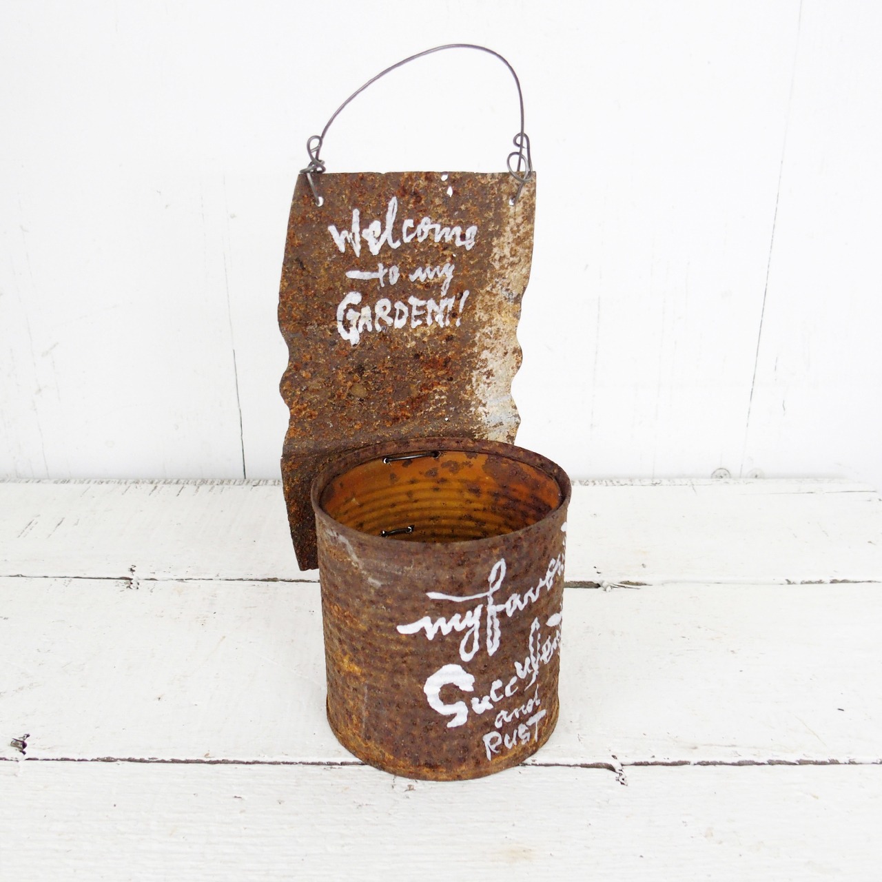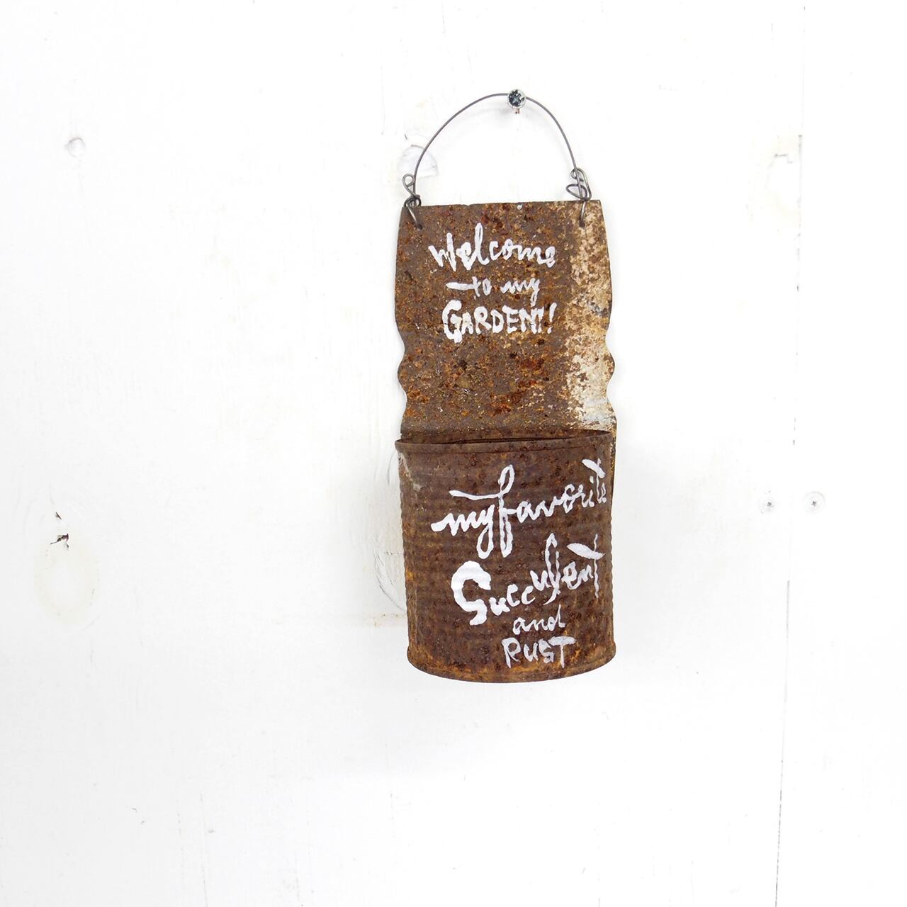 【リメイク缶】サビサビリメ缶 サイン付き (ハンギング)