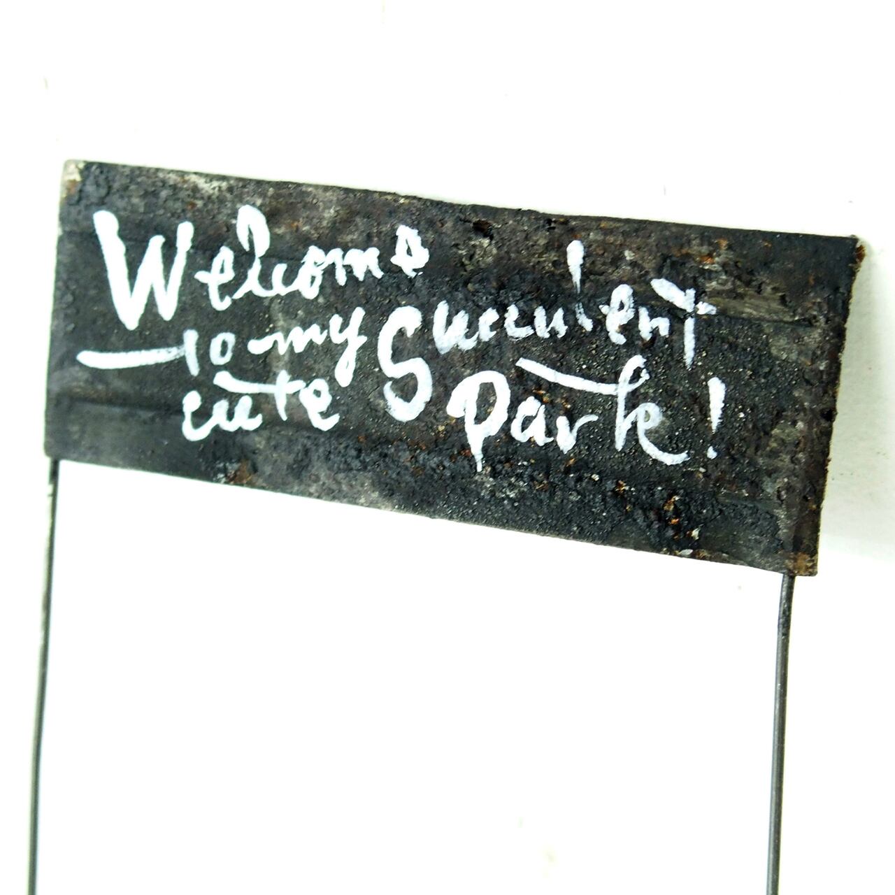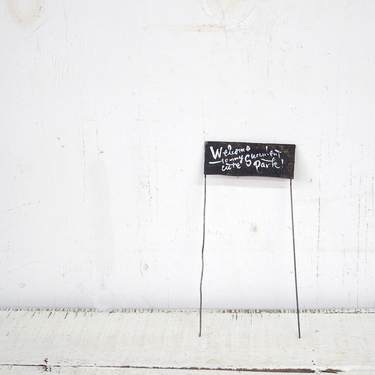 ワイヤーとサビサビのトタンで作った2本足のミニピックです!