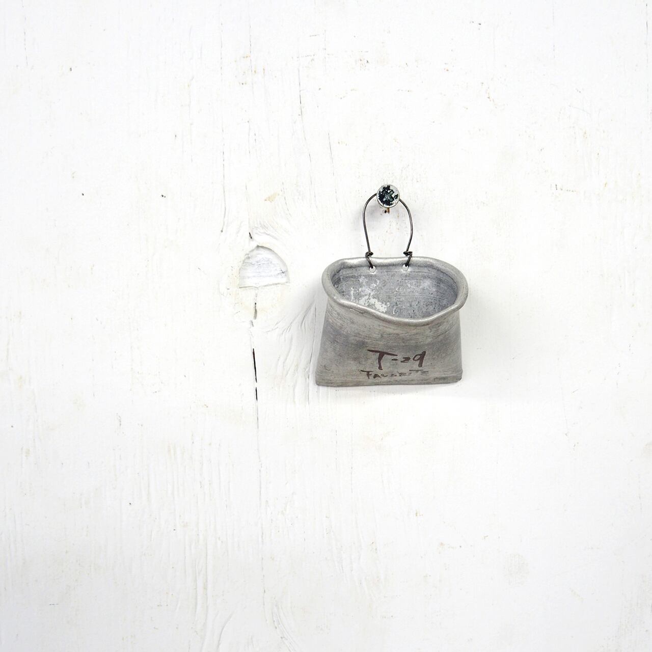 小さなアルミカップの底を切って潰してハンギングリメ缶バッグ風に。