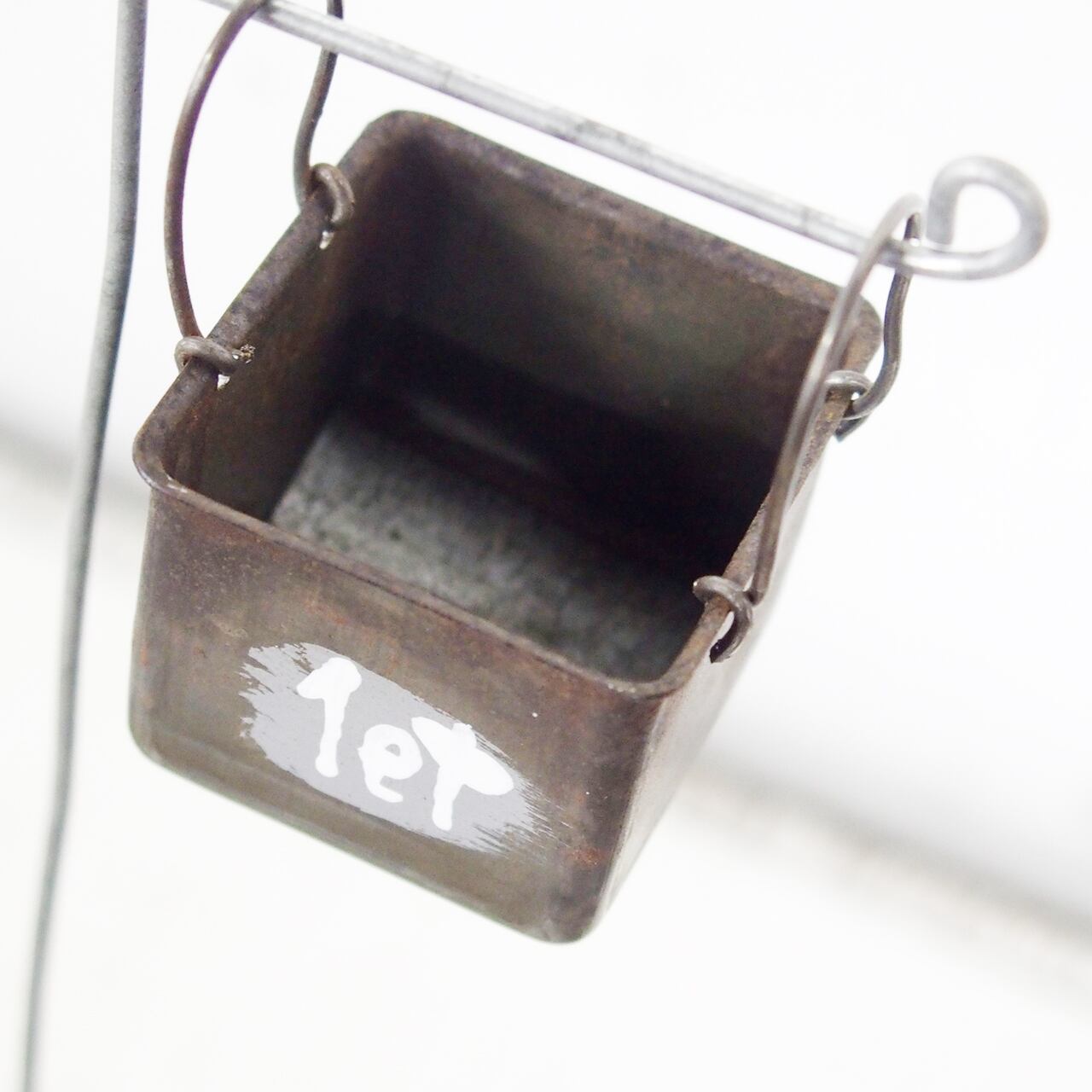 元はお菓子の型だったものにブリキの板で底を作ったミニ缶。