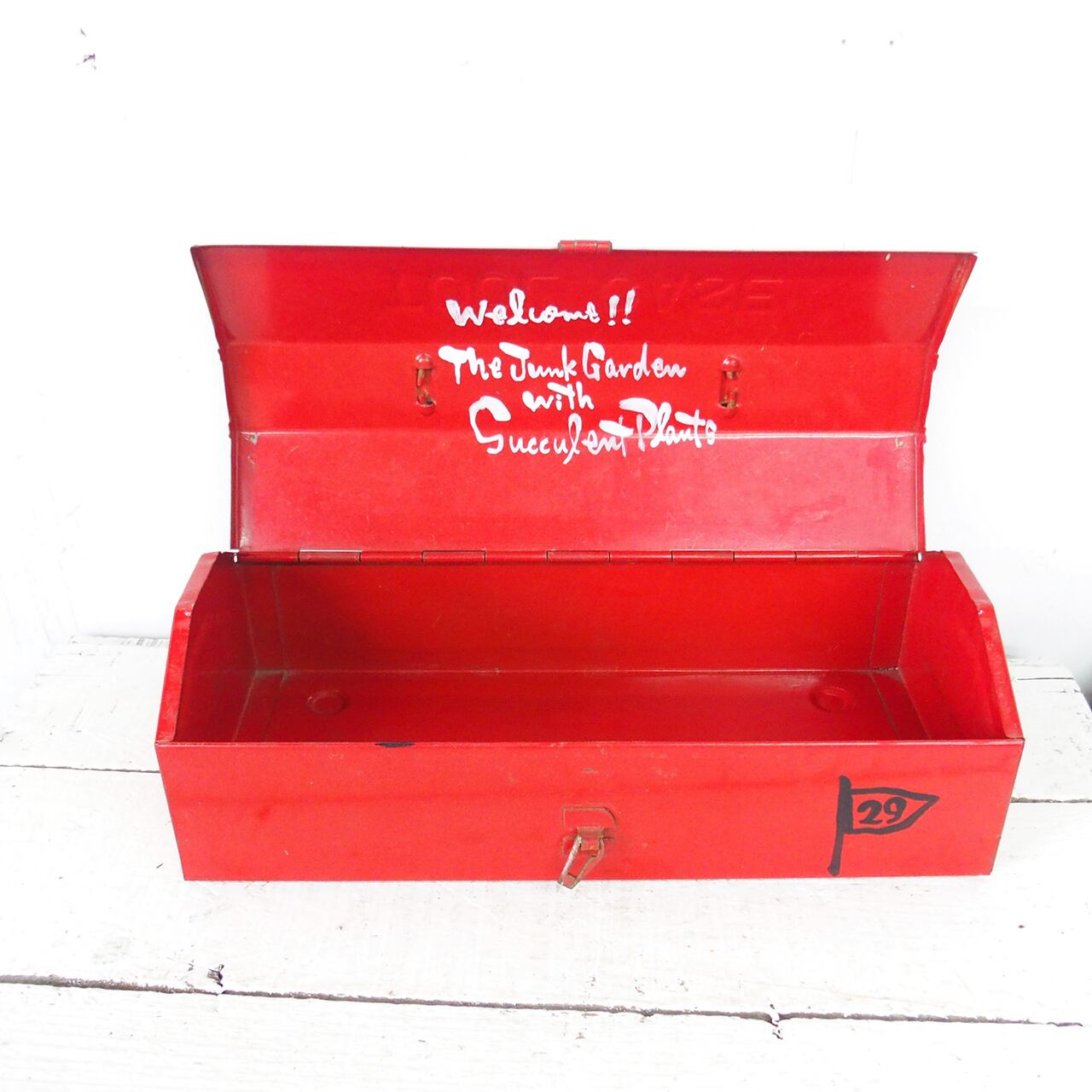 古い工具箱はたにくの寄せ植えにぴったり♪