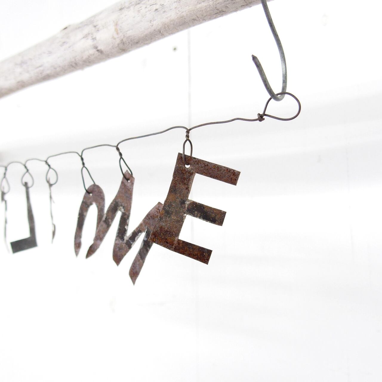 使い古されたサビサビのトタンを切って作った文字を繋げたガーランドです♪