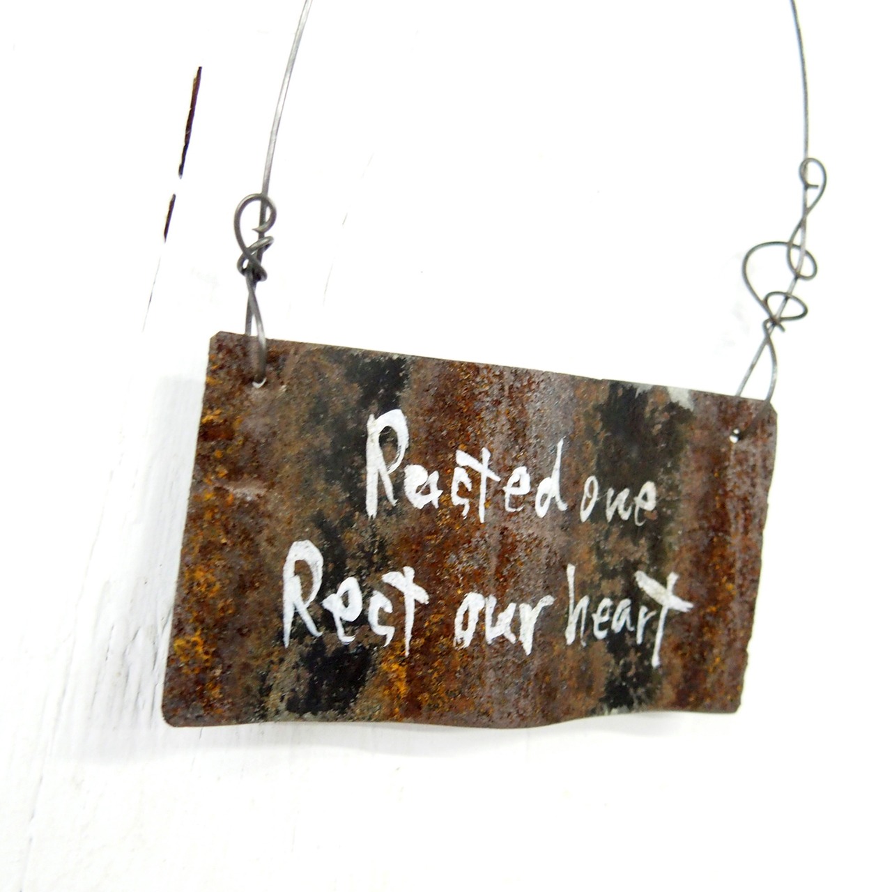 サビサビの波板を平らに伸ばして小さなガーデンサインを作りました♪