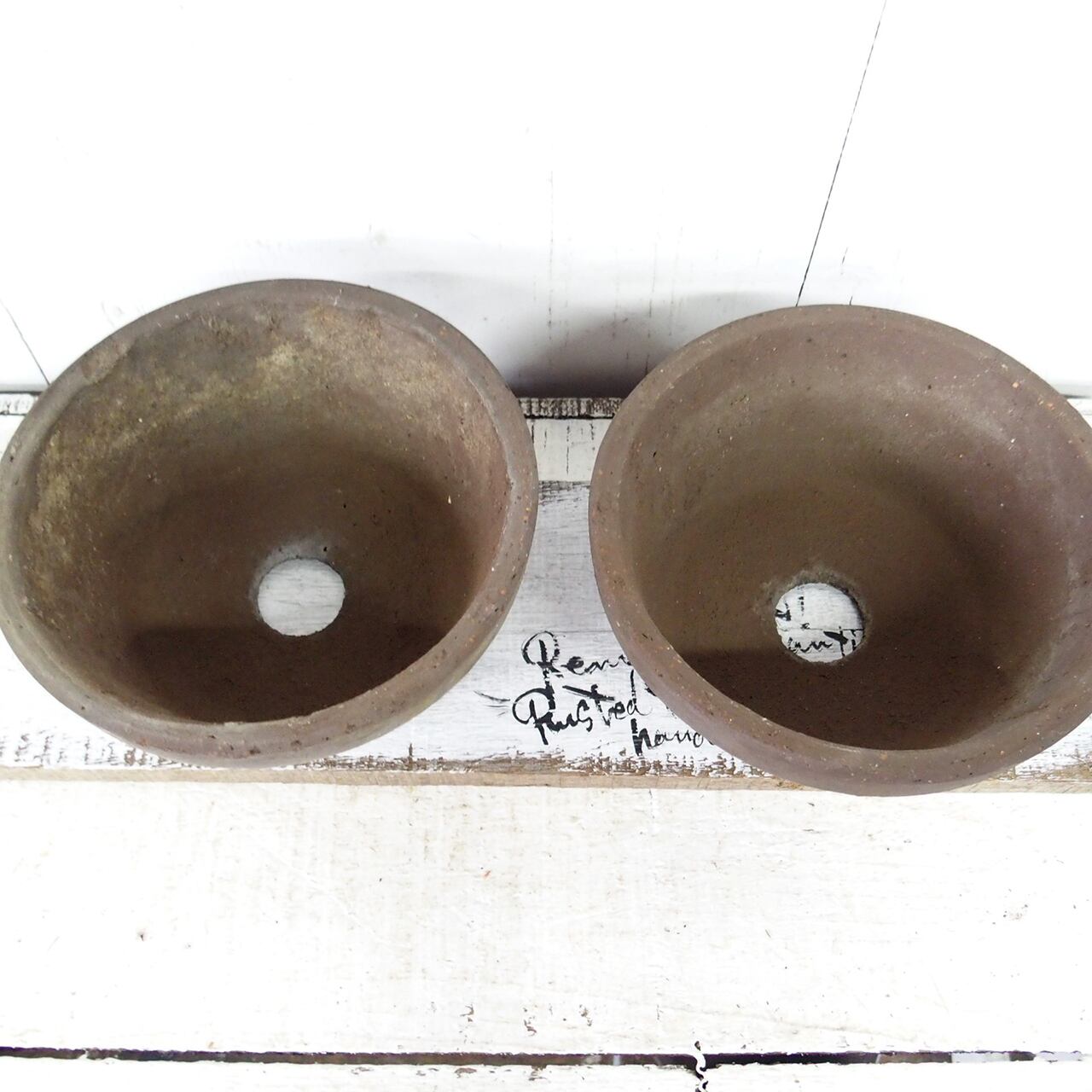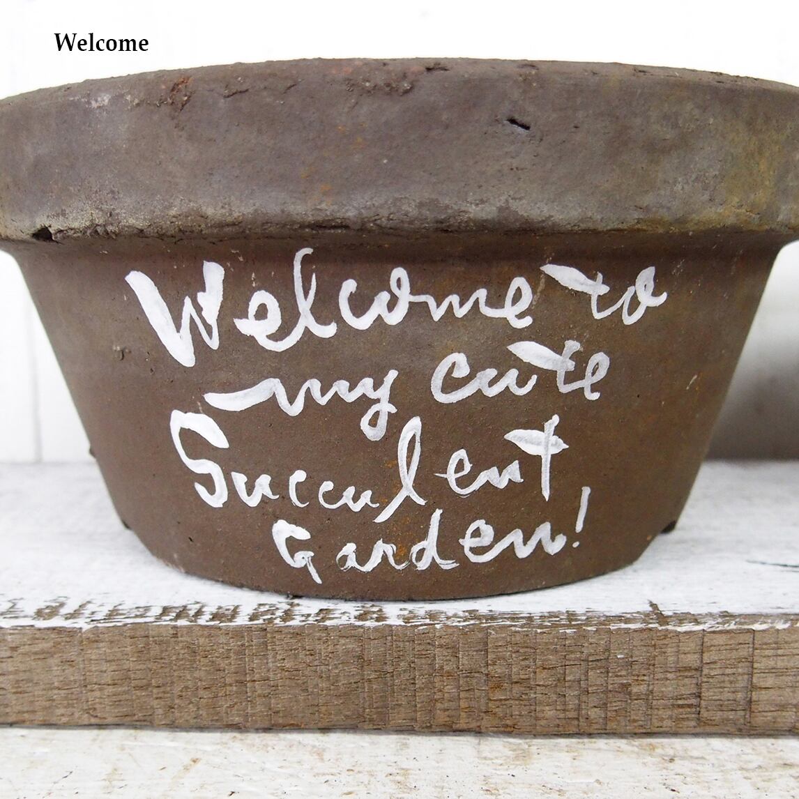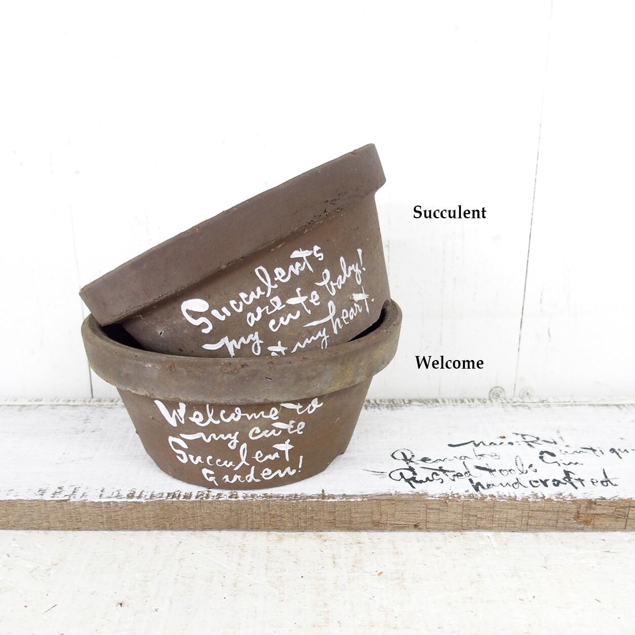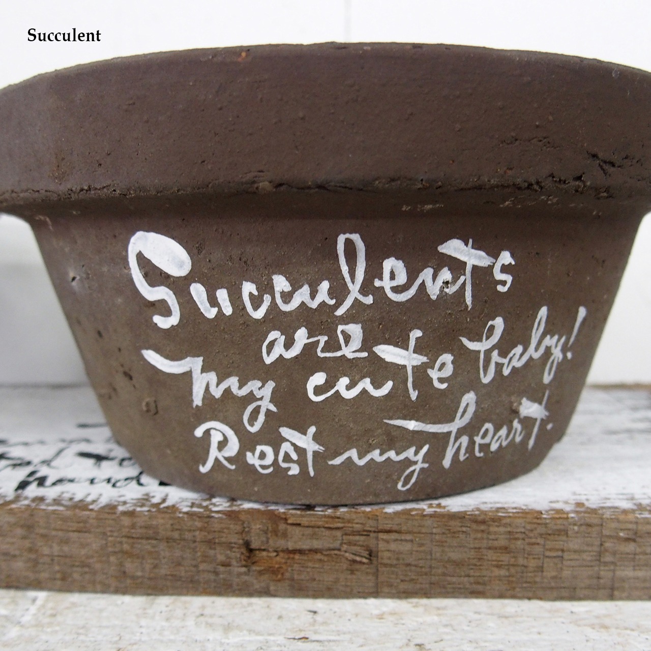デッドストックの素焼き鉢に文字をペイントした
