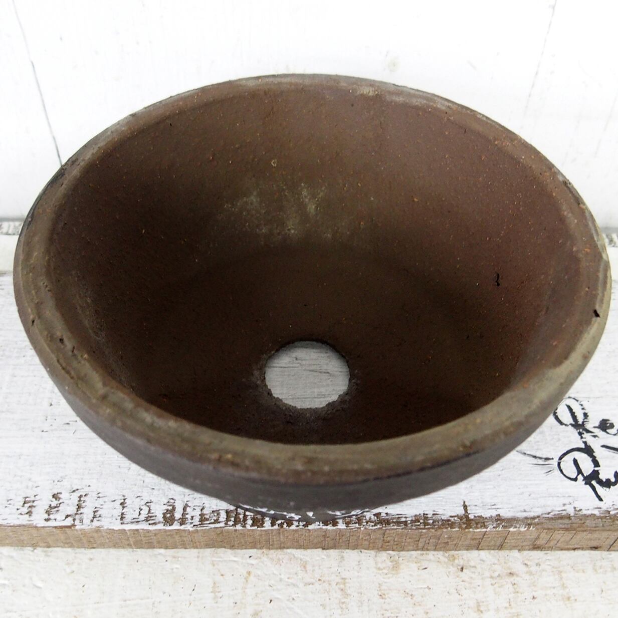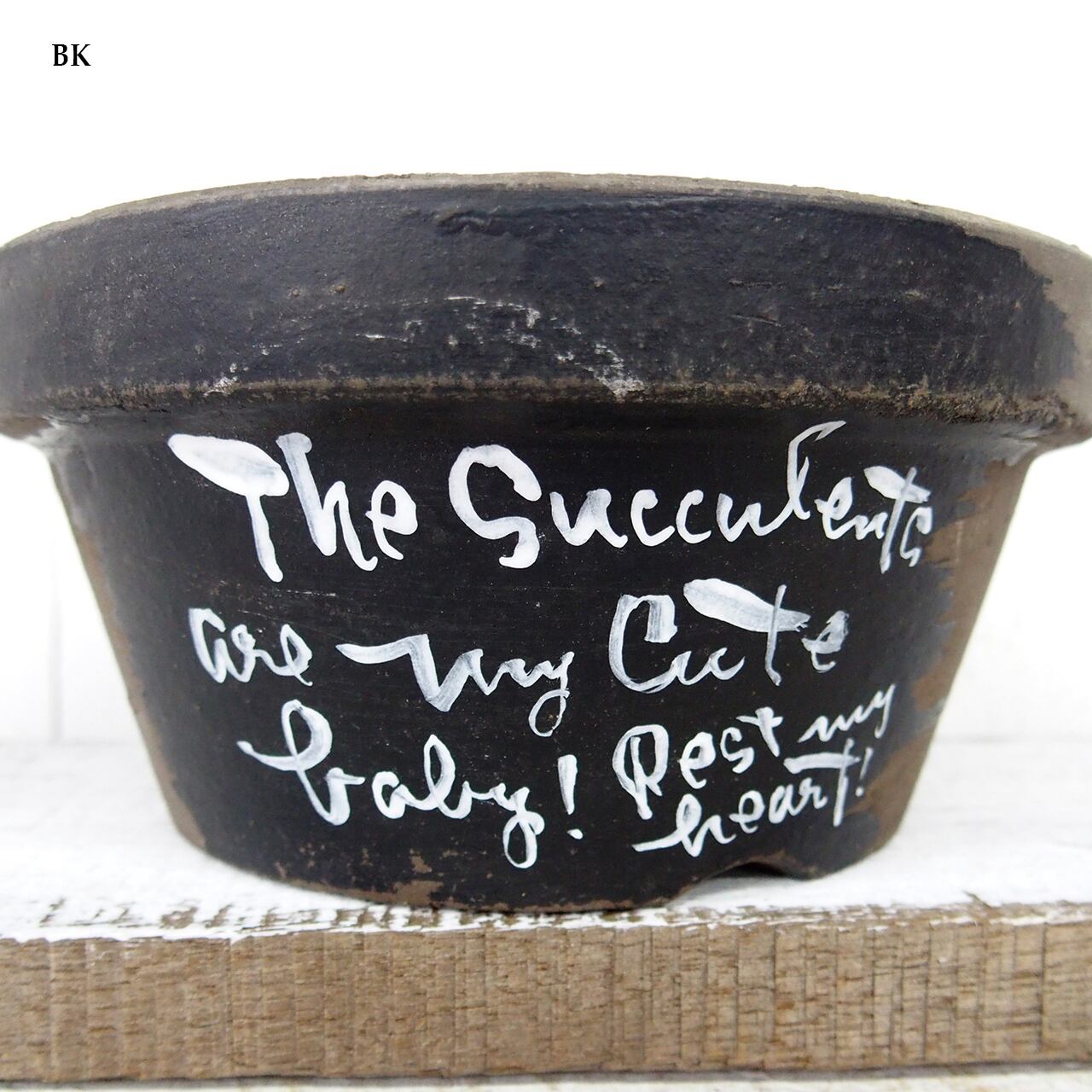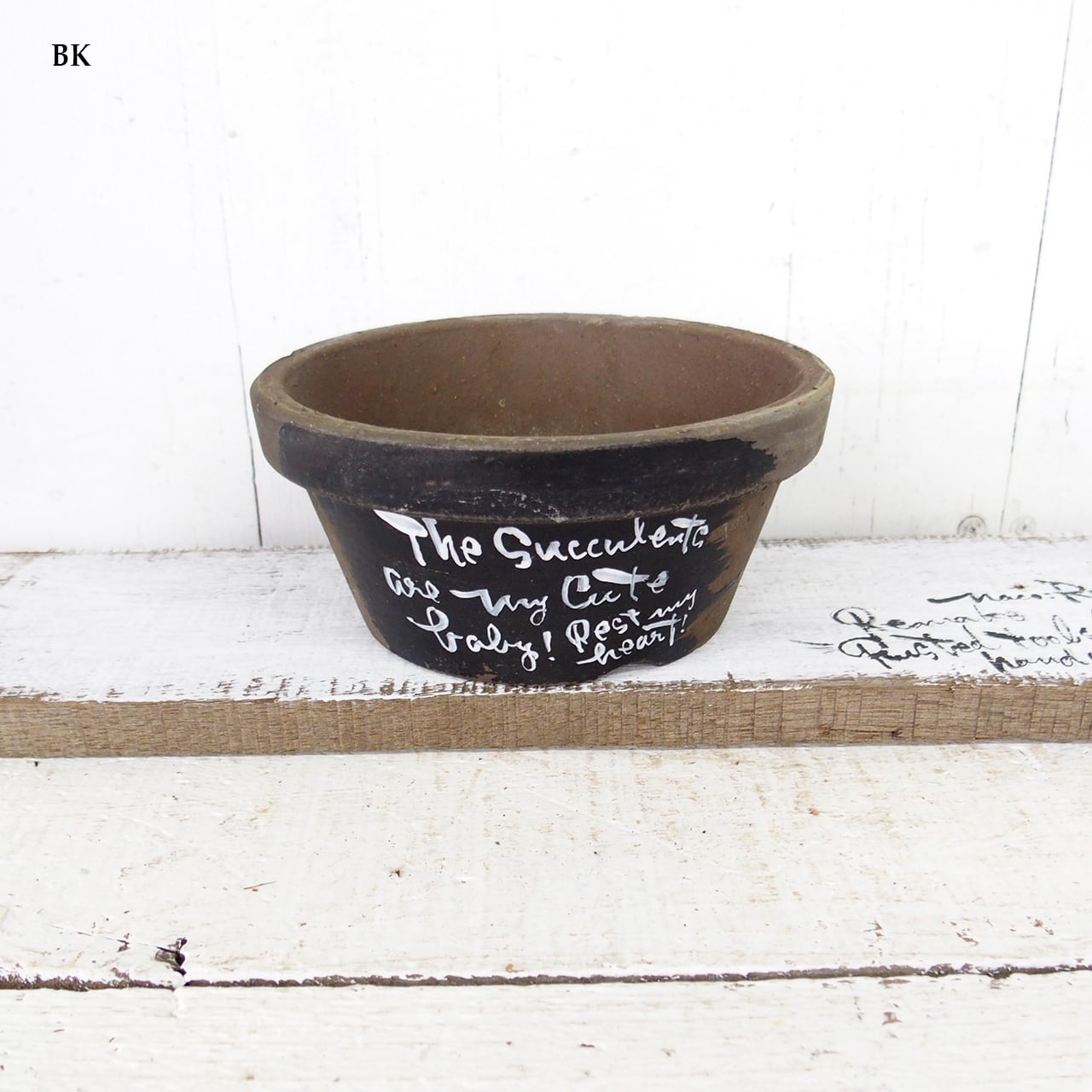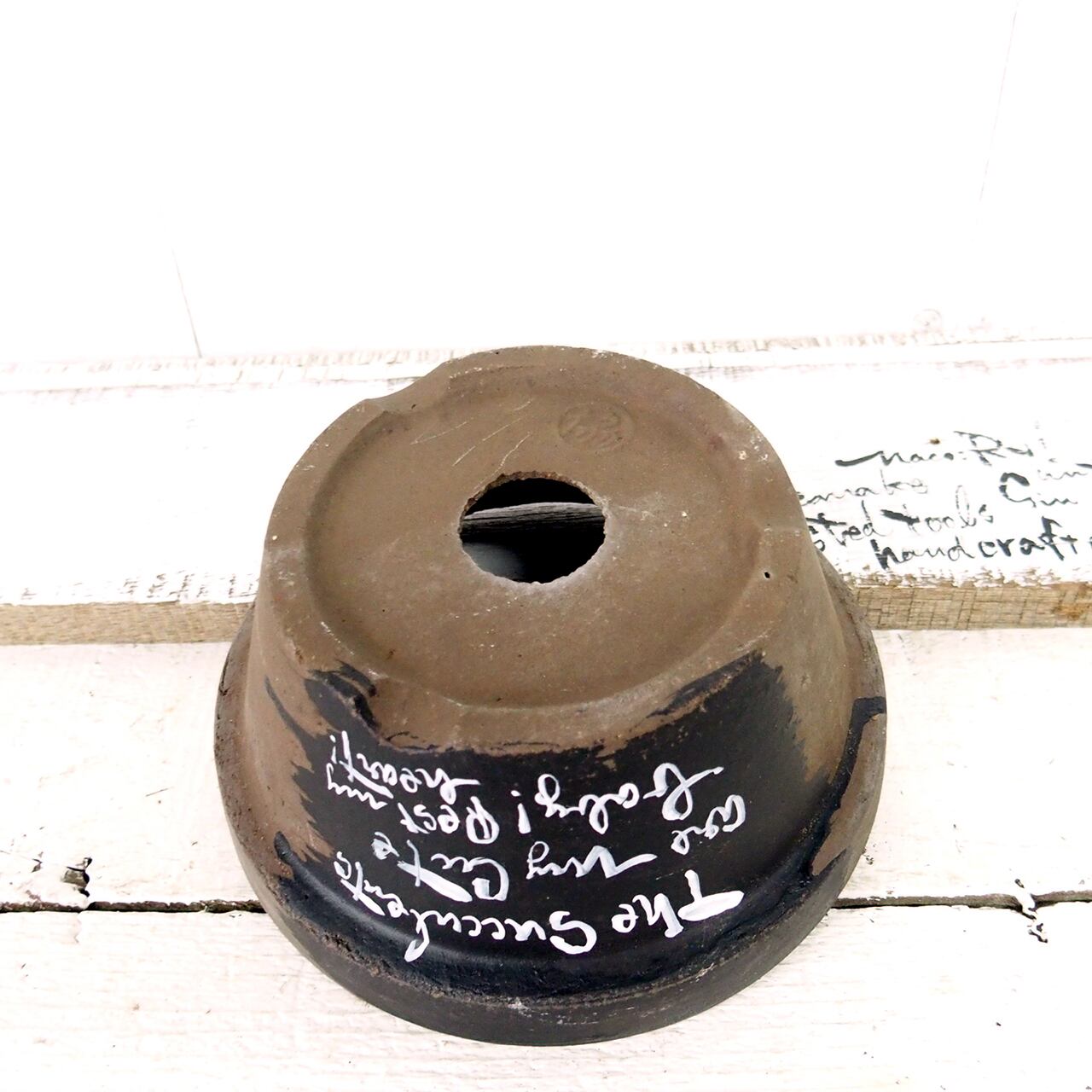 デッドストックの素焼き鉢に文字をペイントした