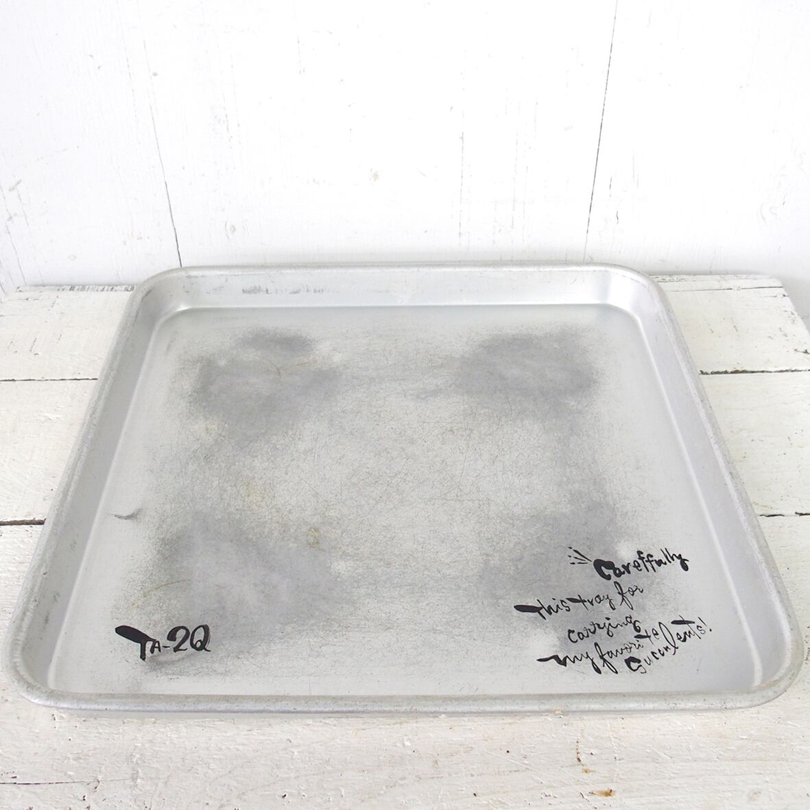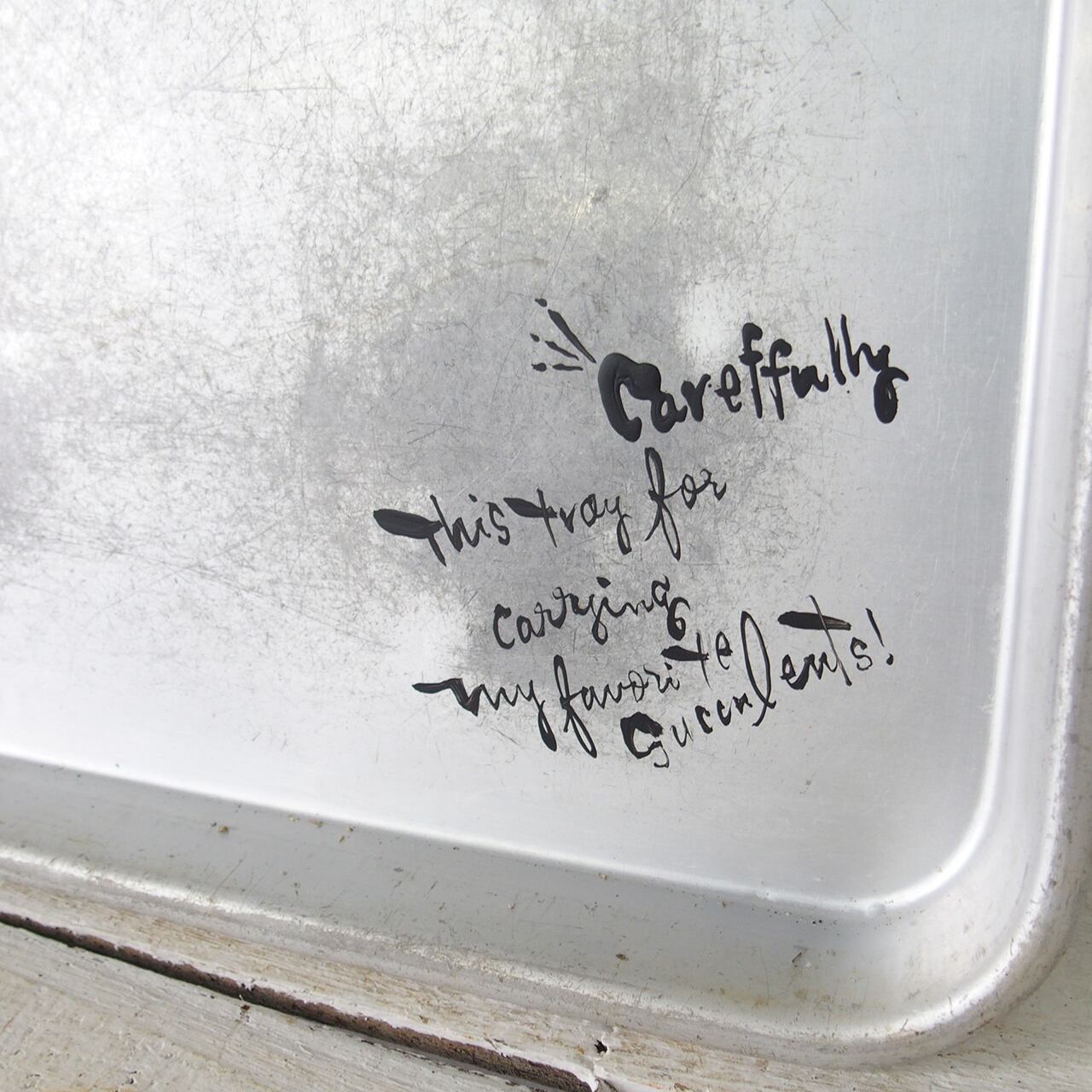 真四角のアルミのトレーに文字を入れたアレンジ作品です♪