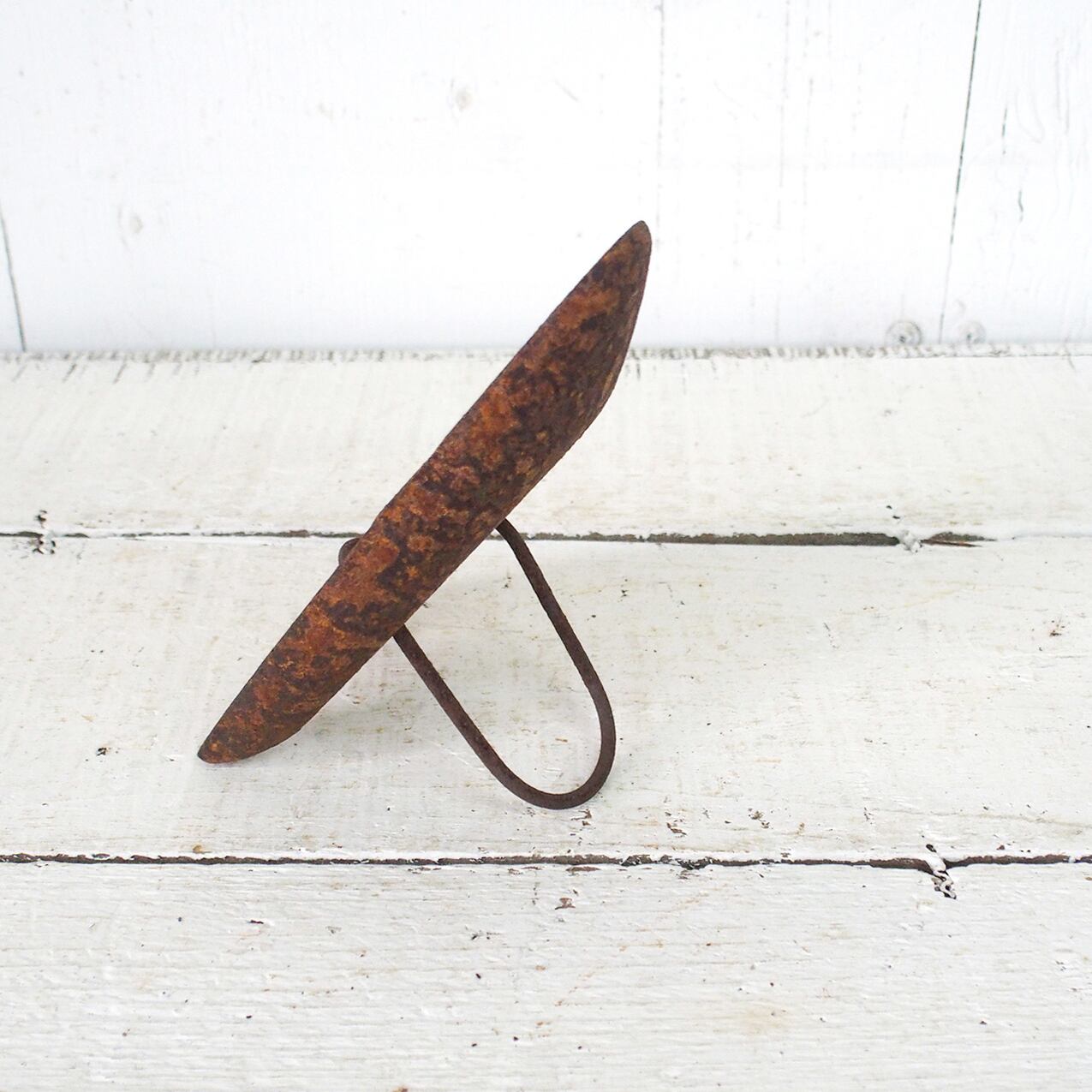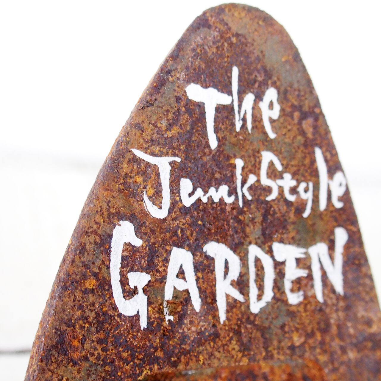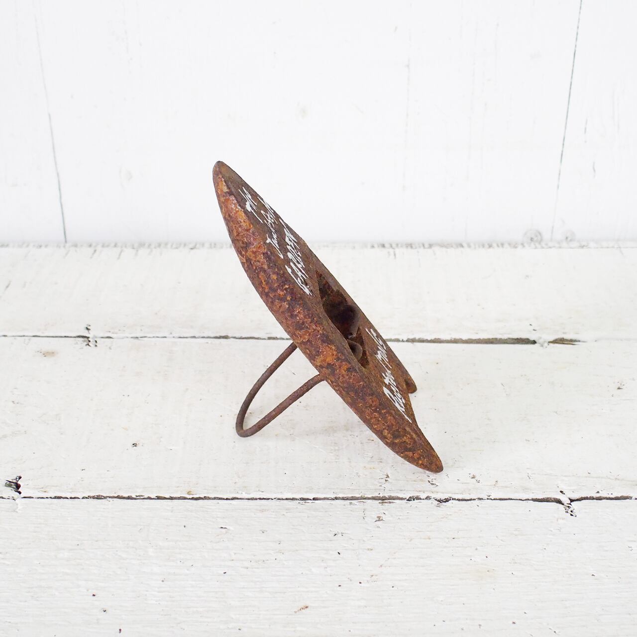 サビサビの古いアイロンに文字を入れたガーデンサインです。
