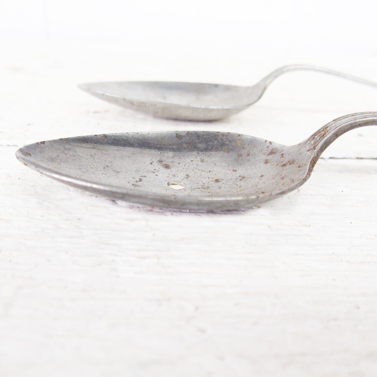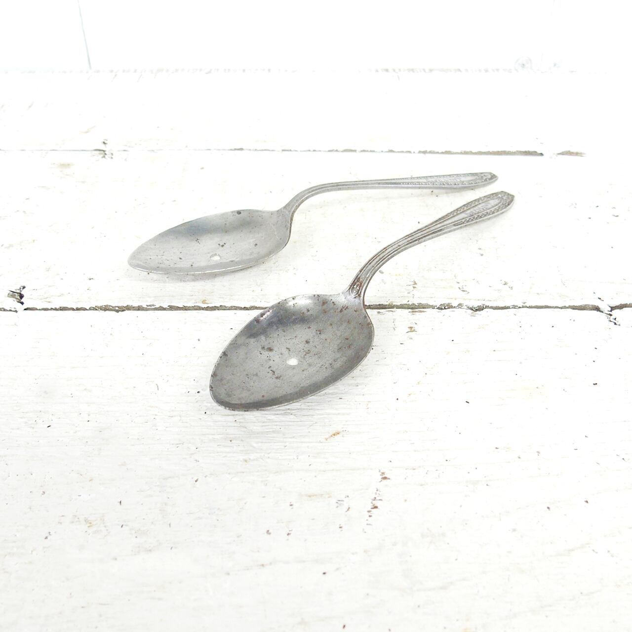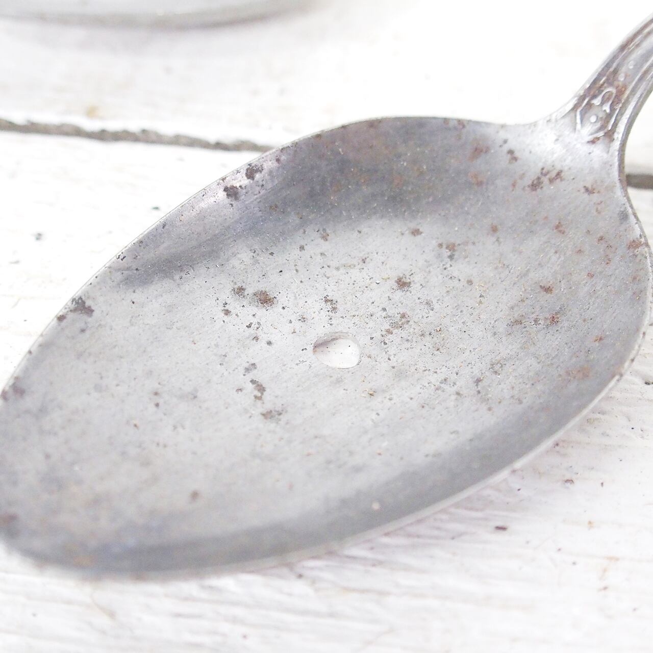古いアンティークスプーンを少しだけ曲げて穴を開け