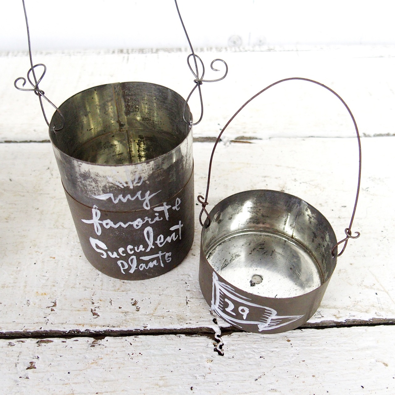 古い小さなお茶缶をハンギングプランターに♪