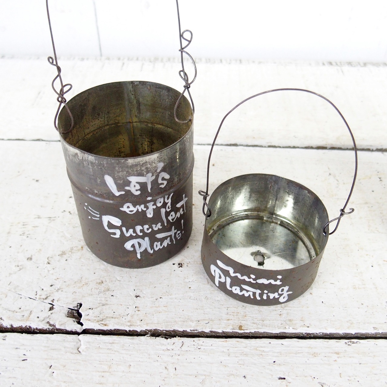 【リメイクお茶缶】ミニお茶缶ハンギングプランターセット