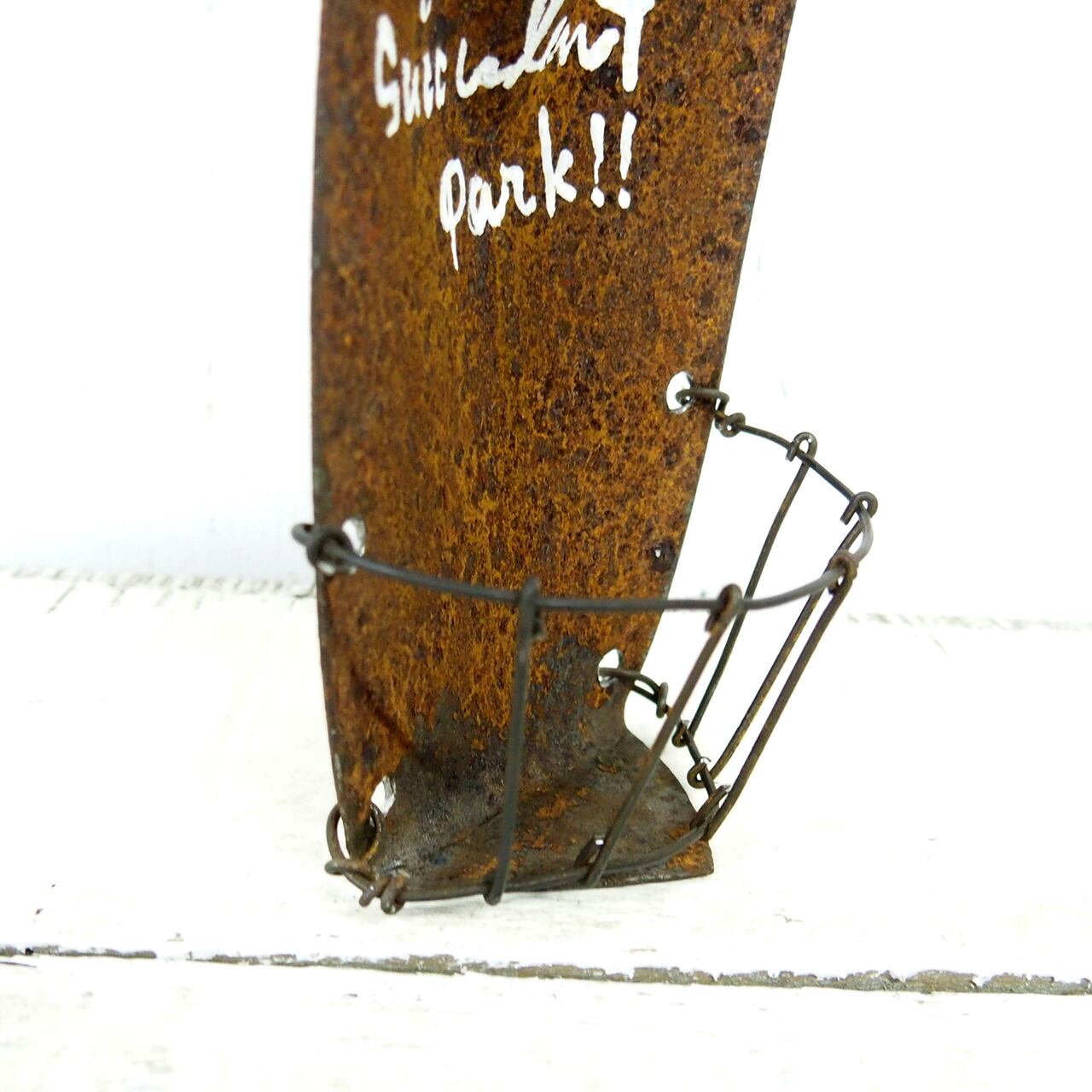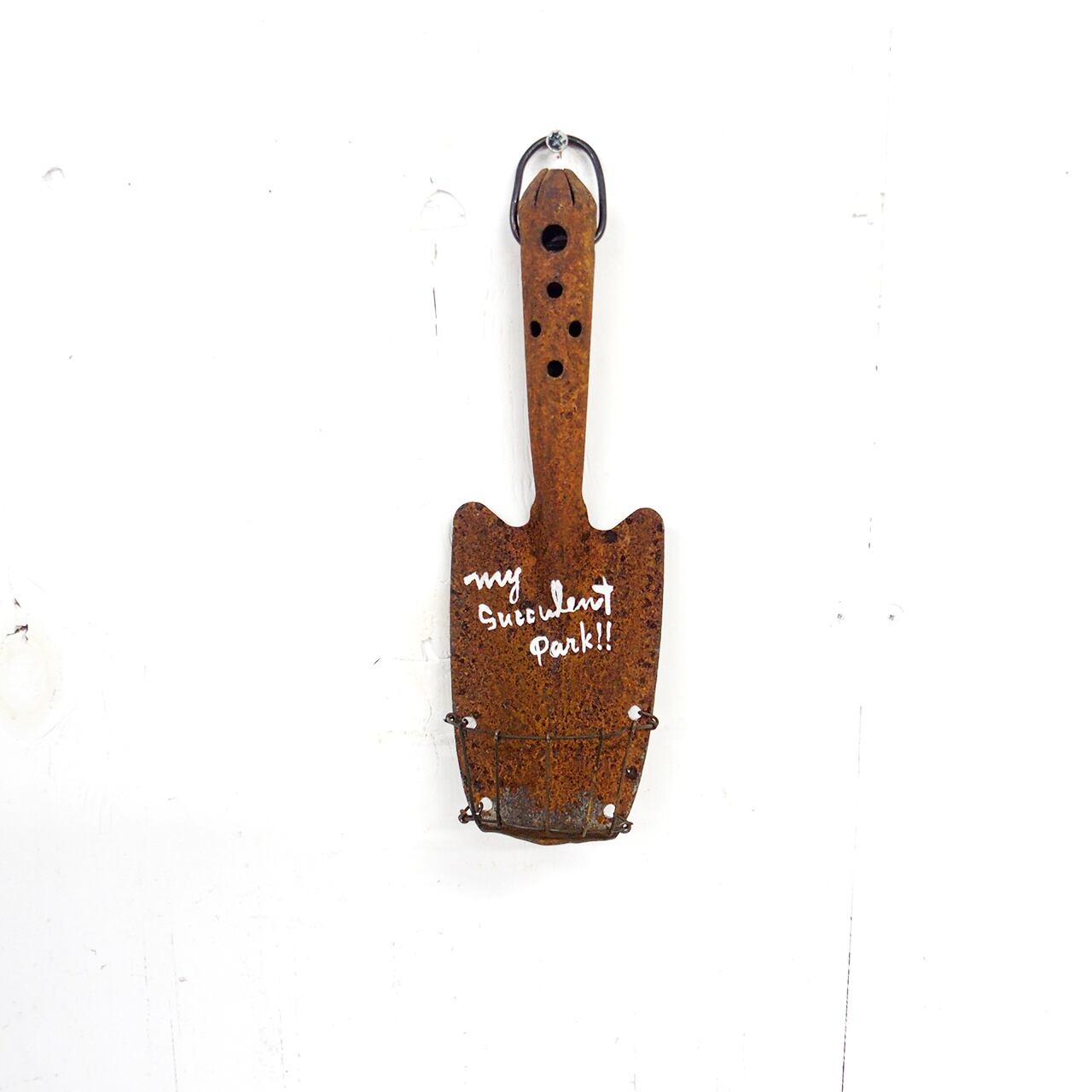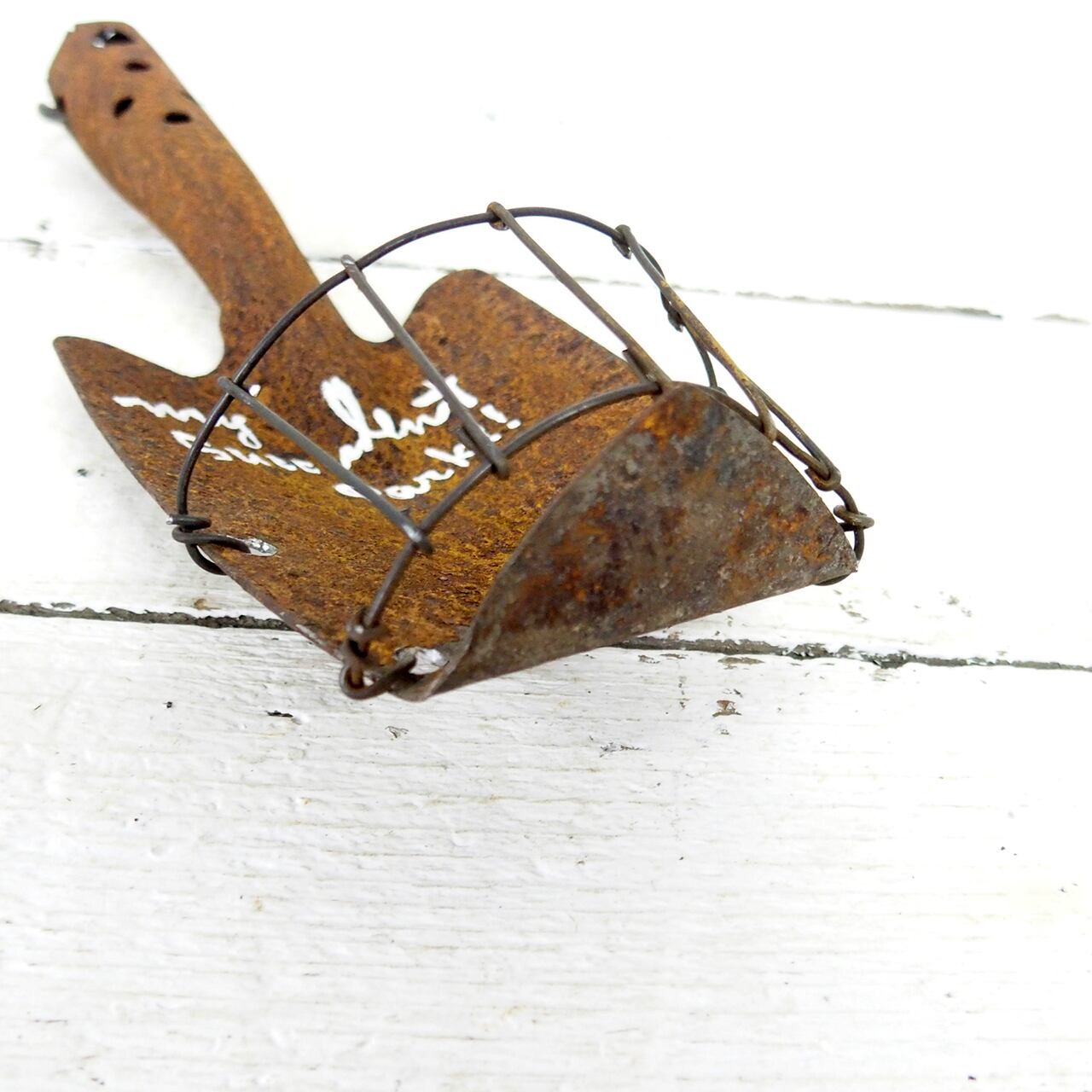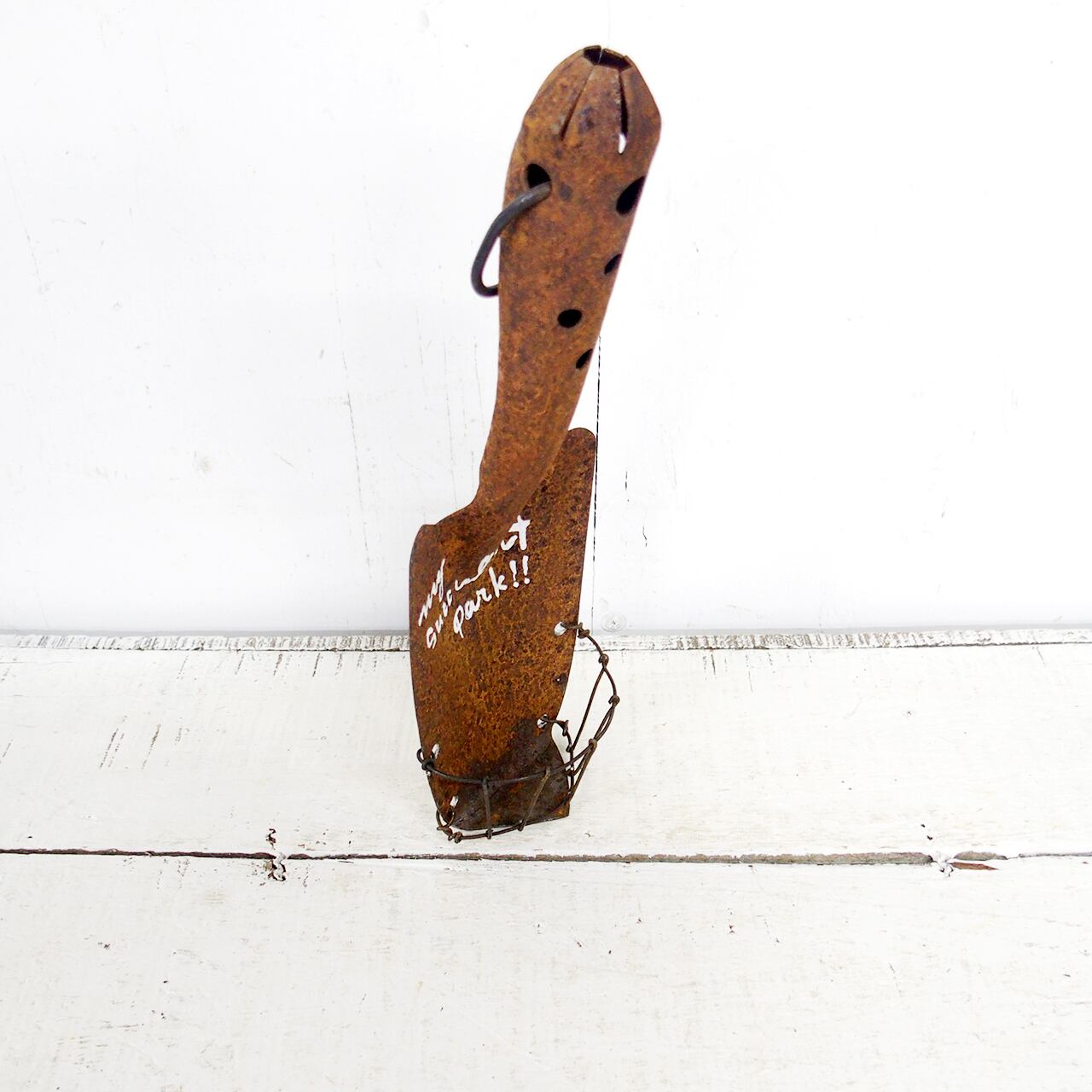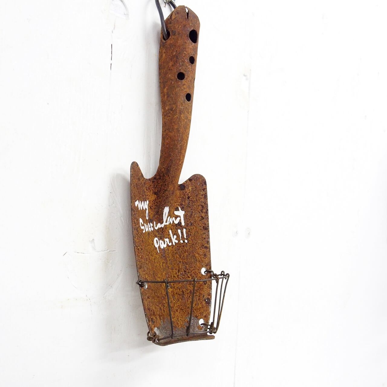 サビサビの移植ごて(小さなスコップ)にワイヤーでバスケットを♪