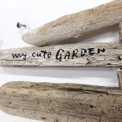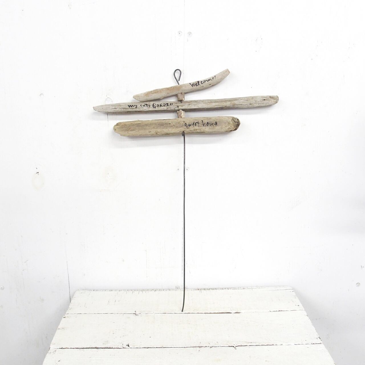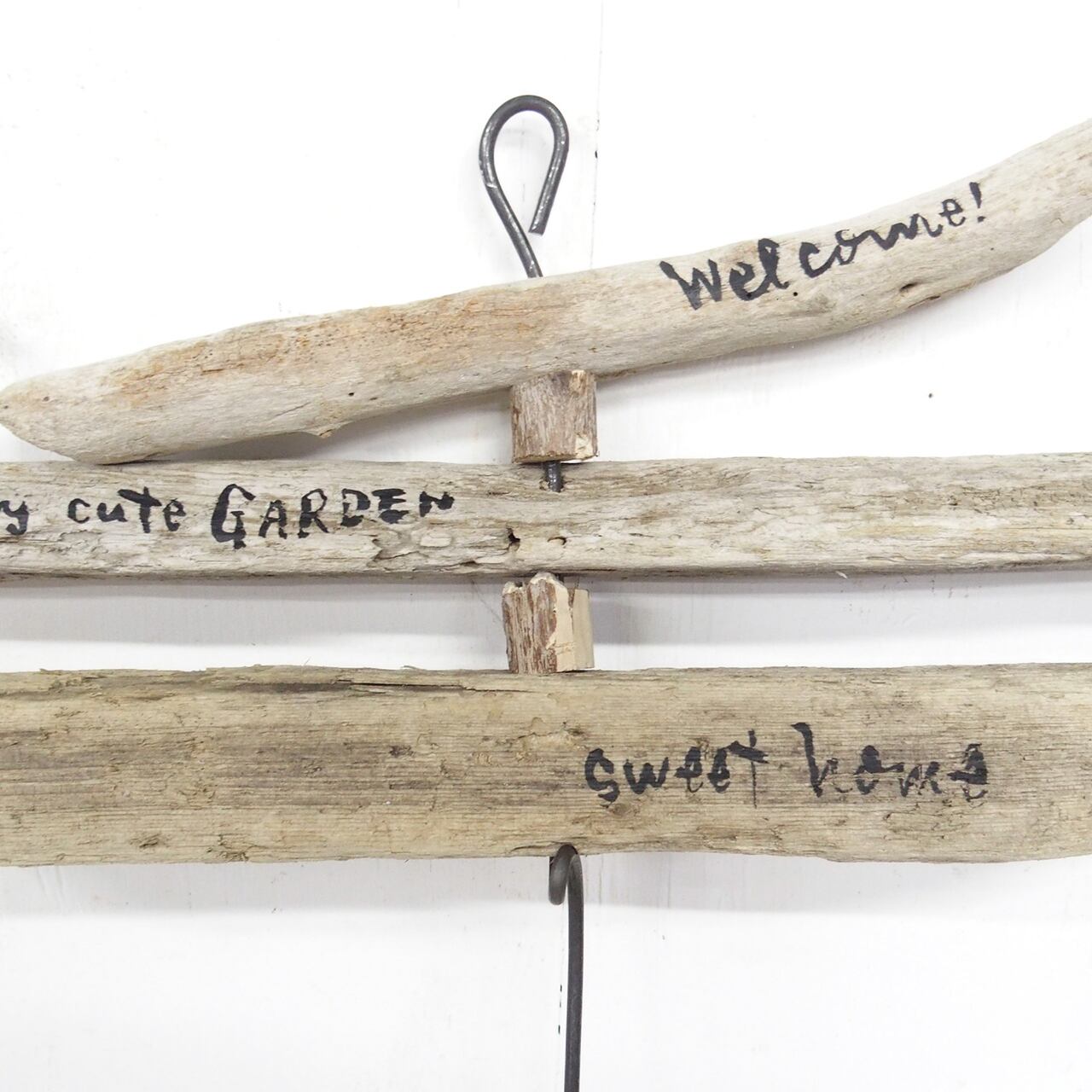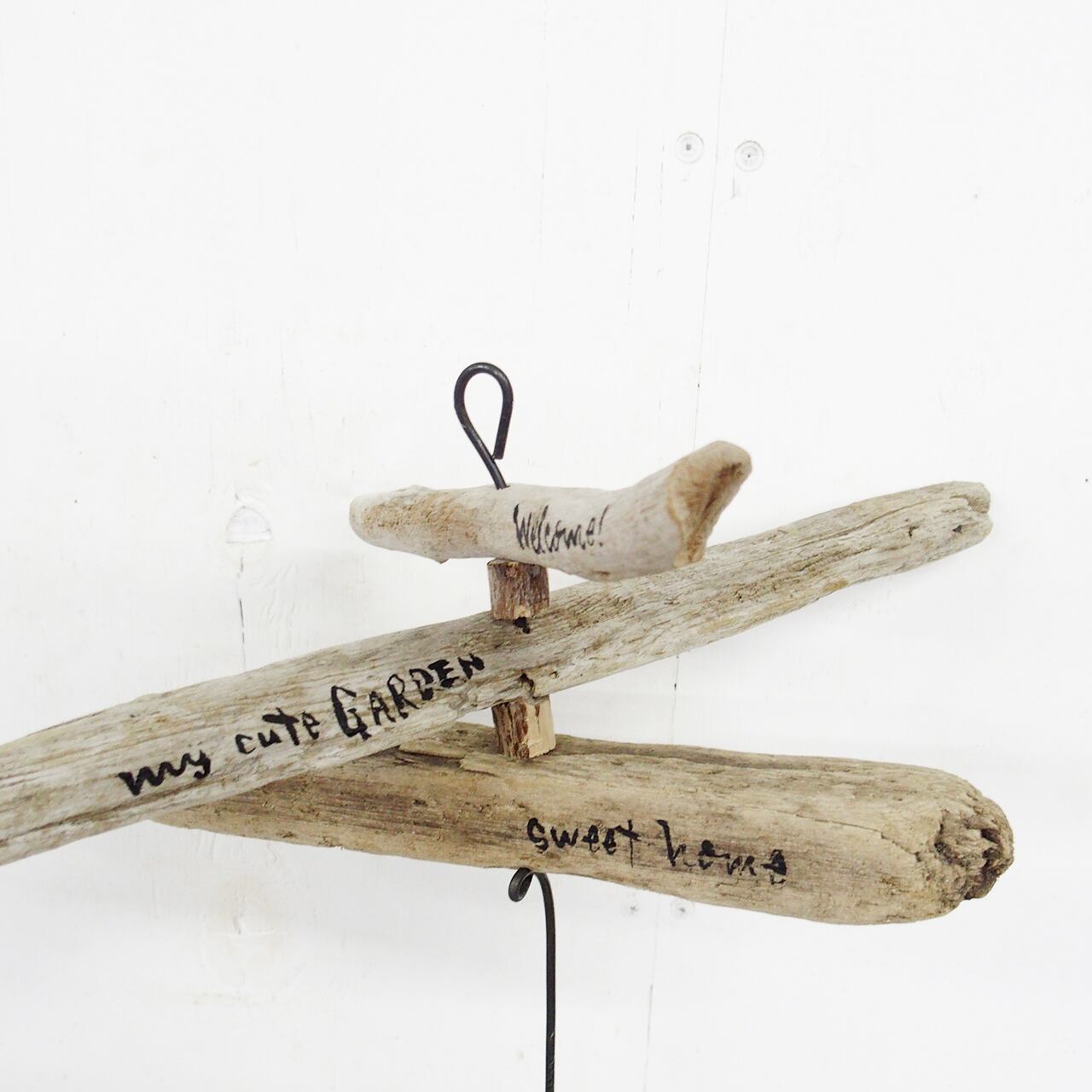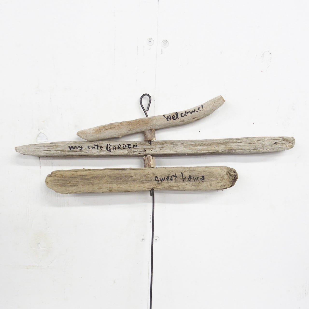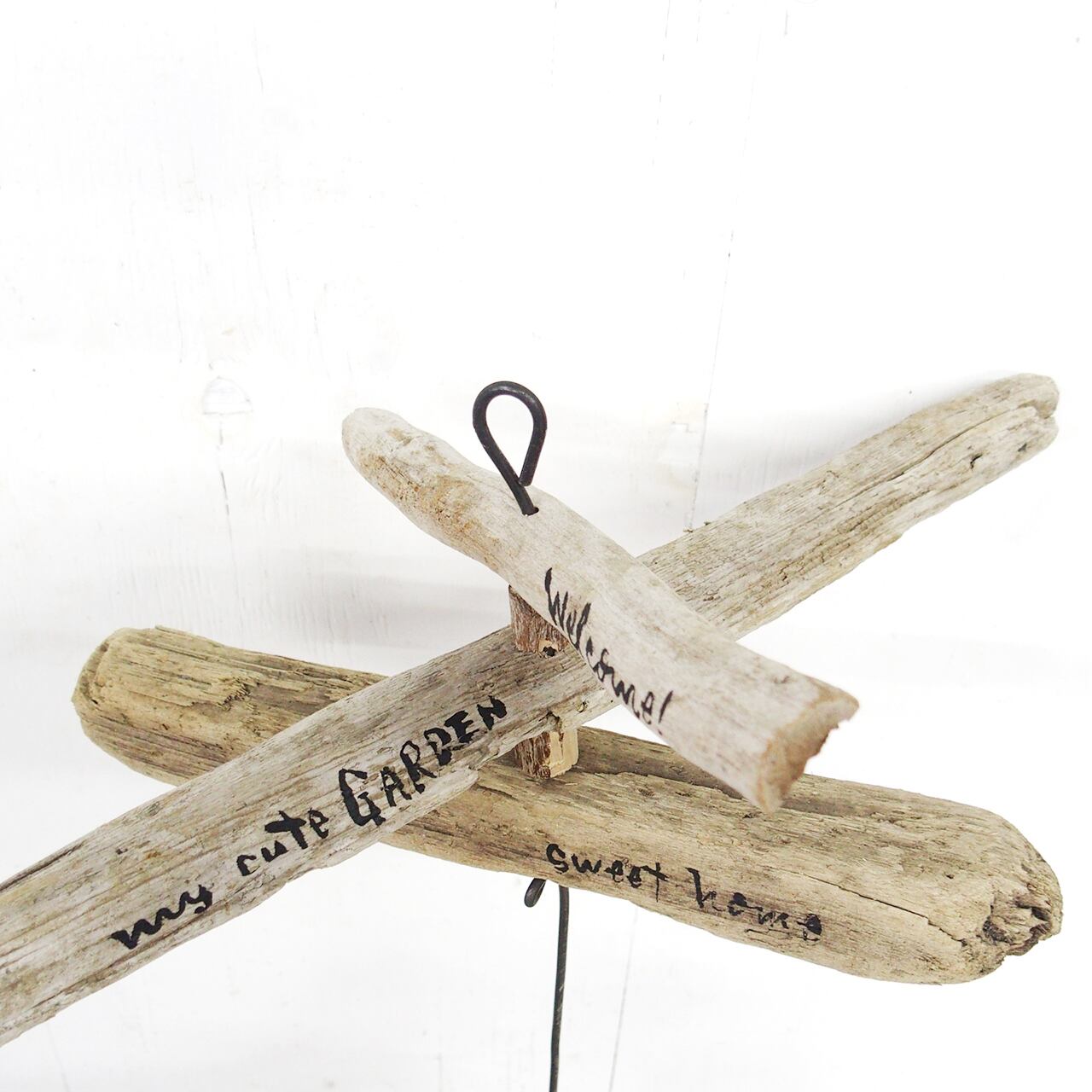 3本の流木に文字を入れ串刺しにしたガーデンピックです♪
